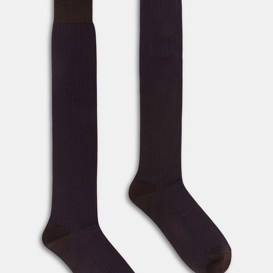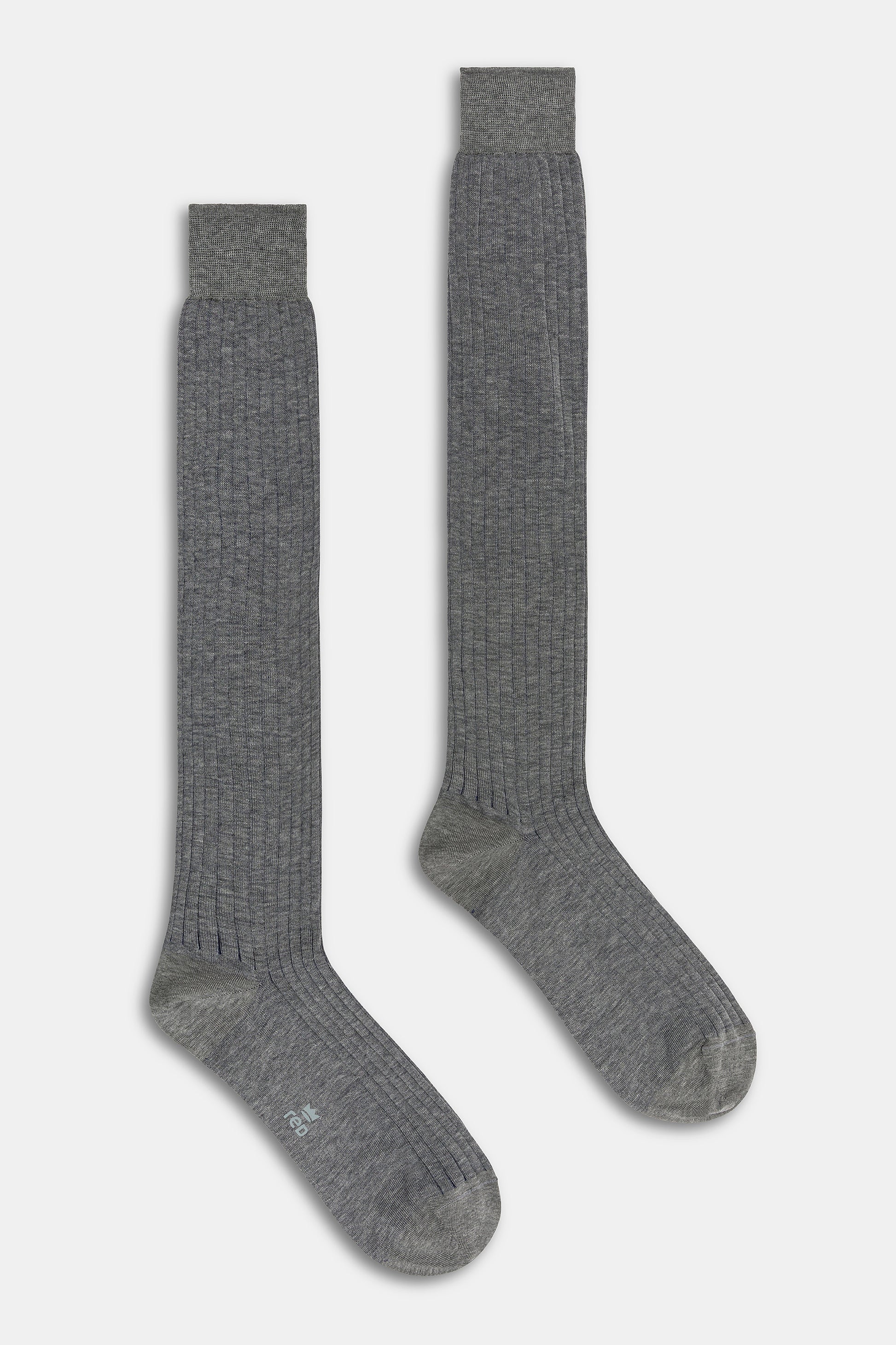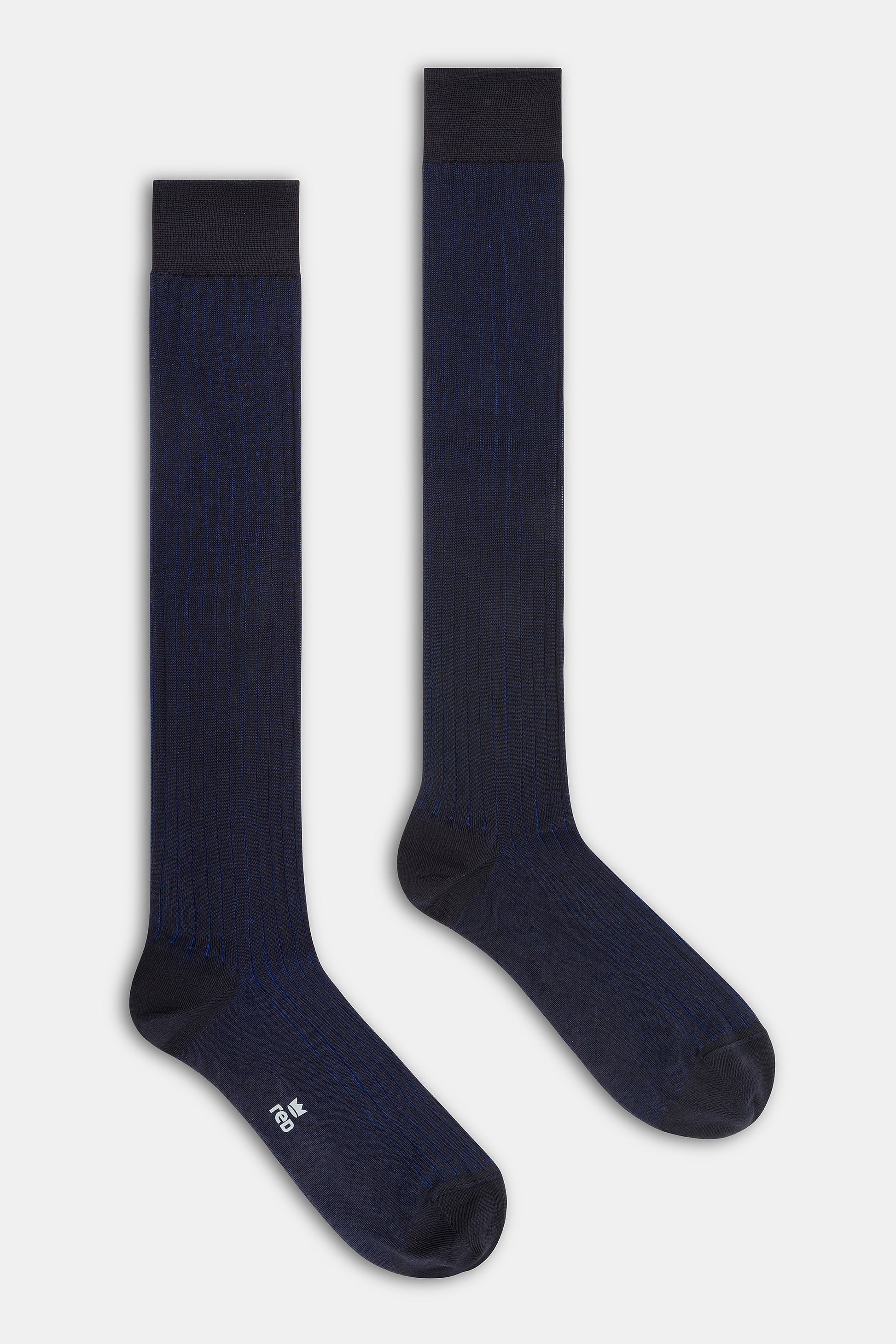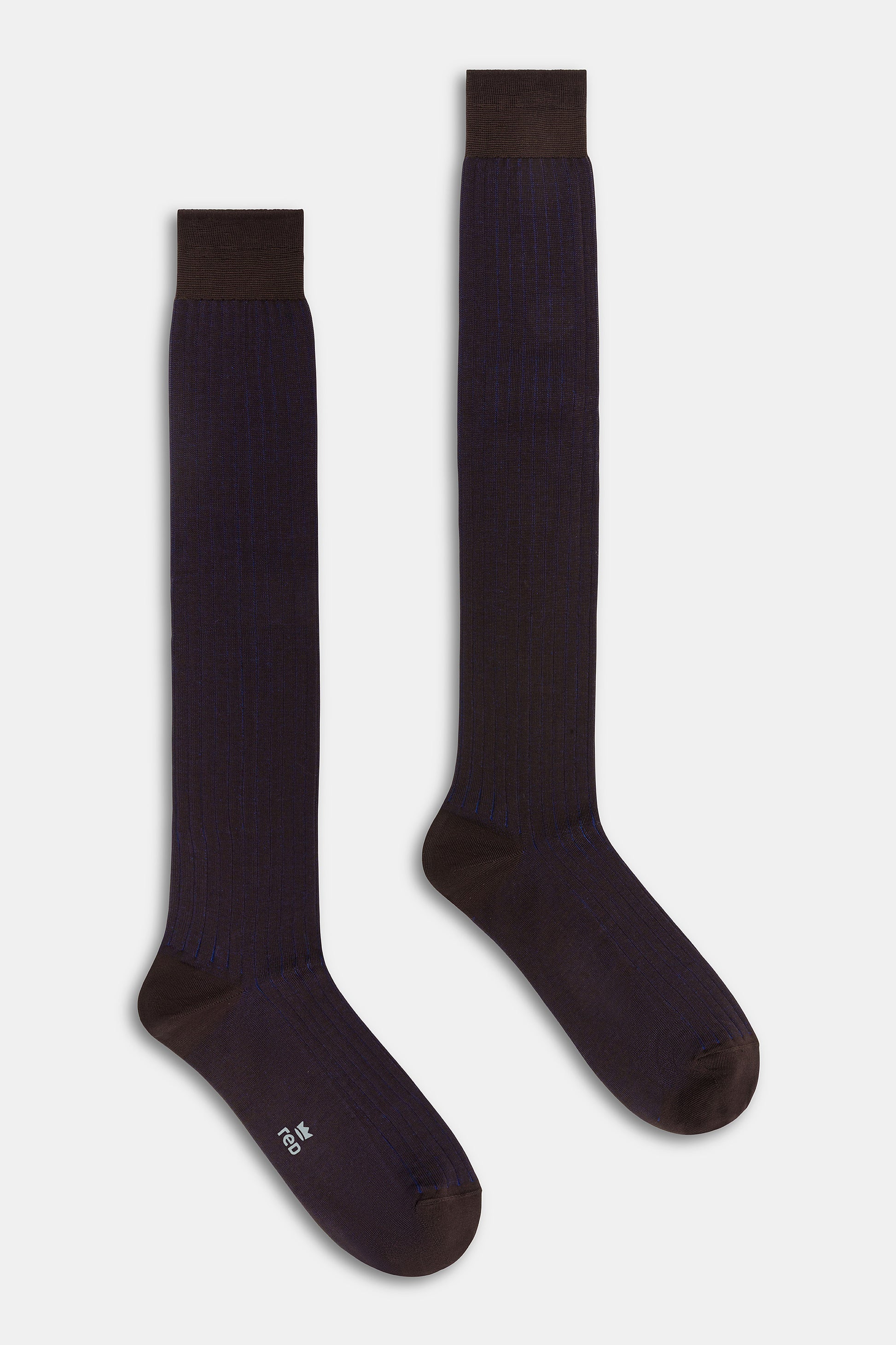 Men's long socks in 100% ribbed cotton, in a refined Vanisé workmanship with contrasting colours to appear impeccable on every occasion.