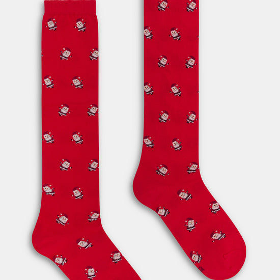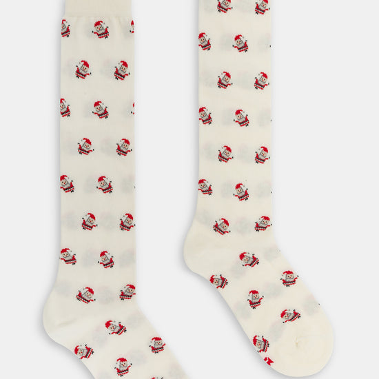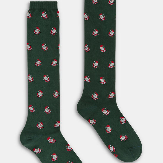 Calza lunga da donna in caldo cotone con motivo Santa Claus.