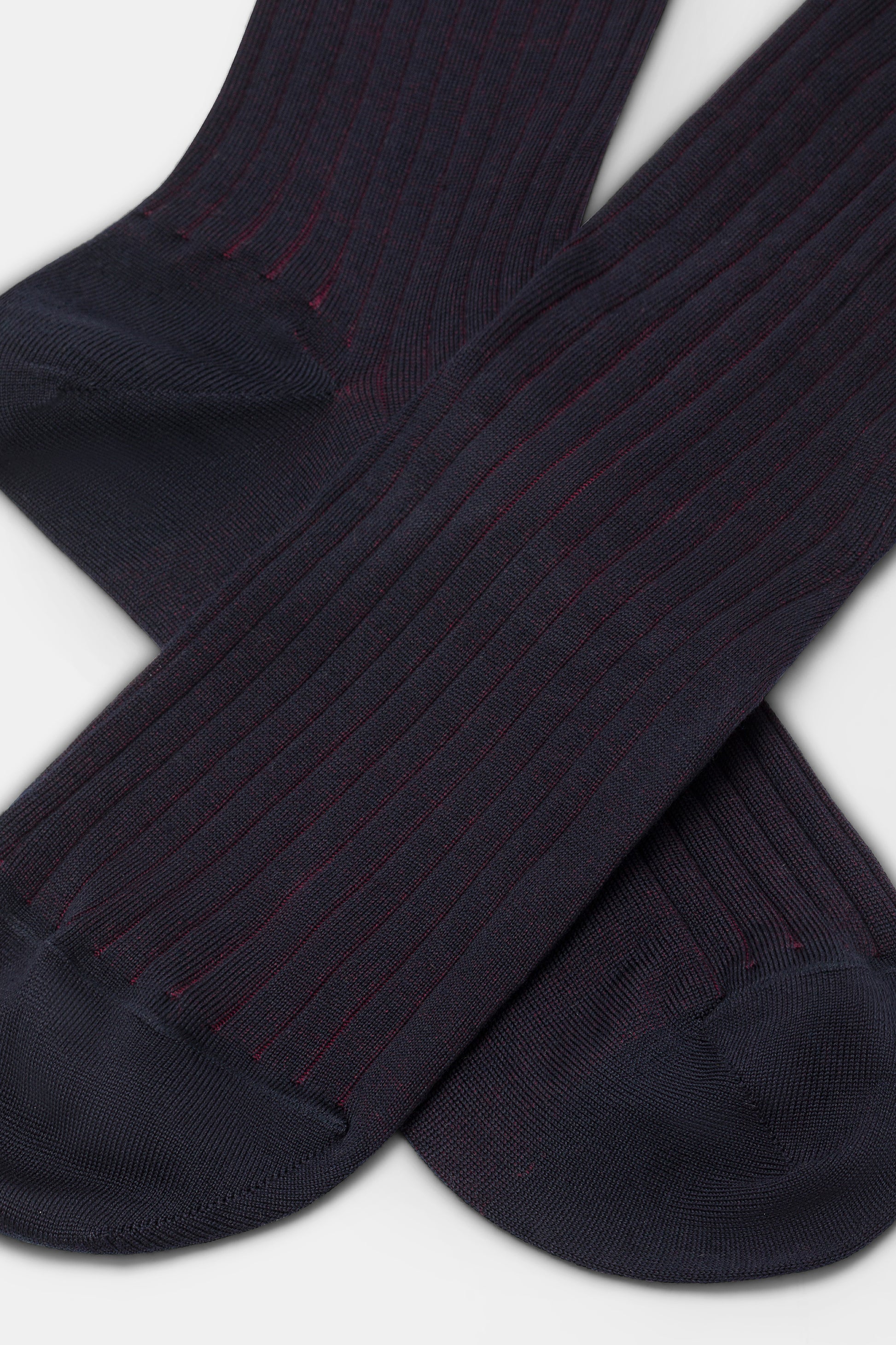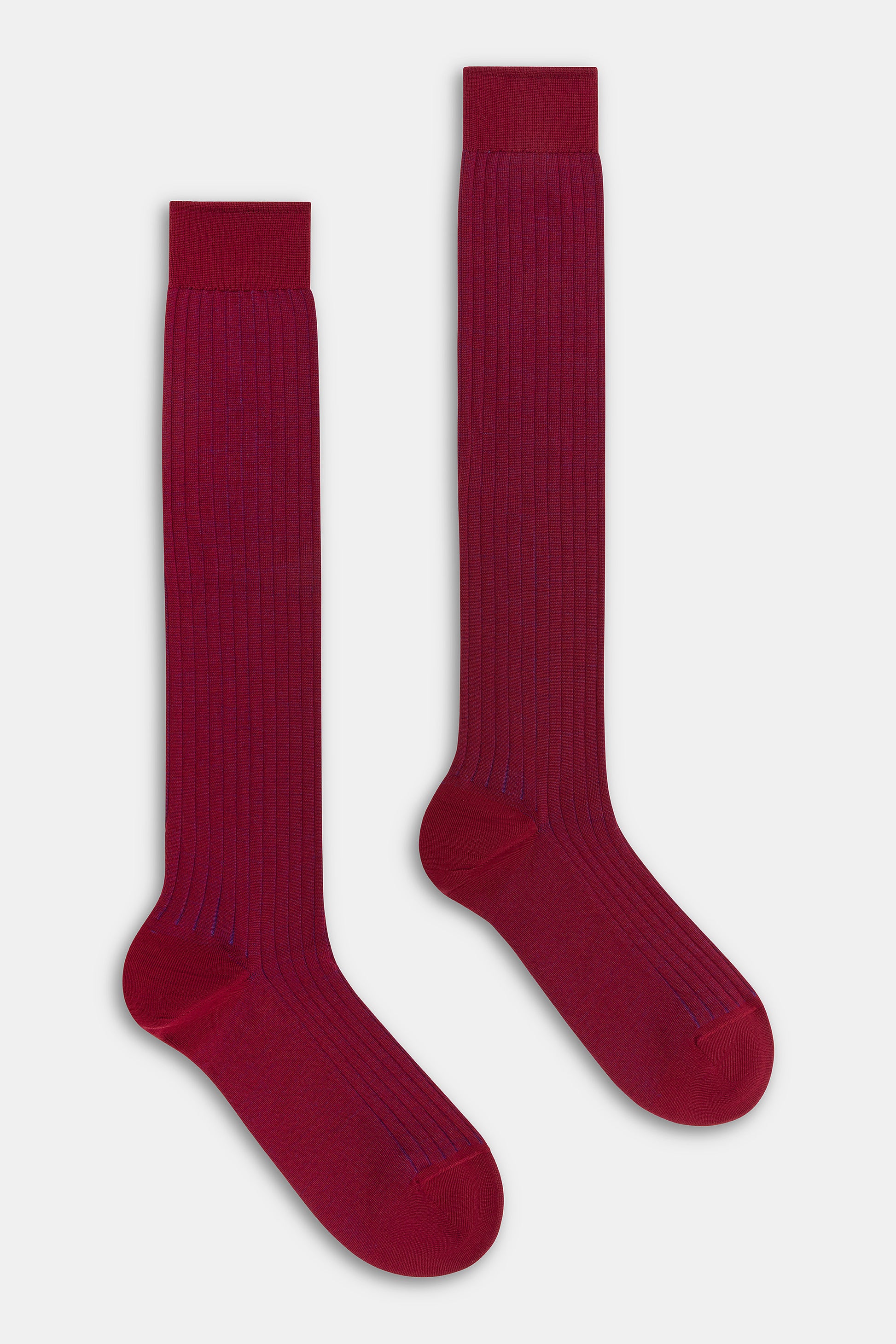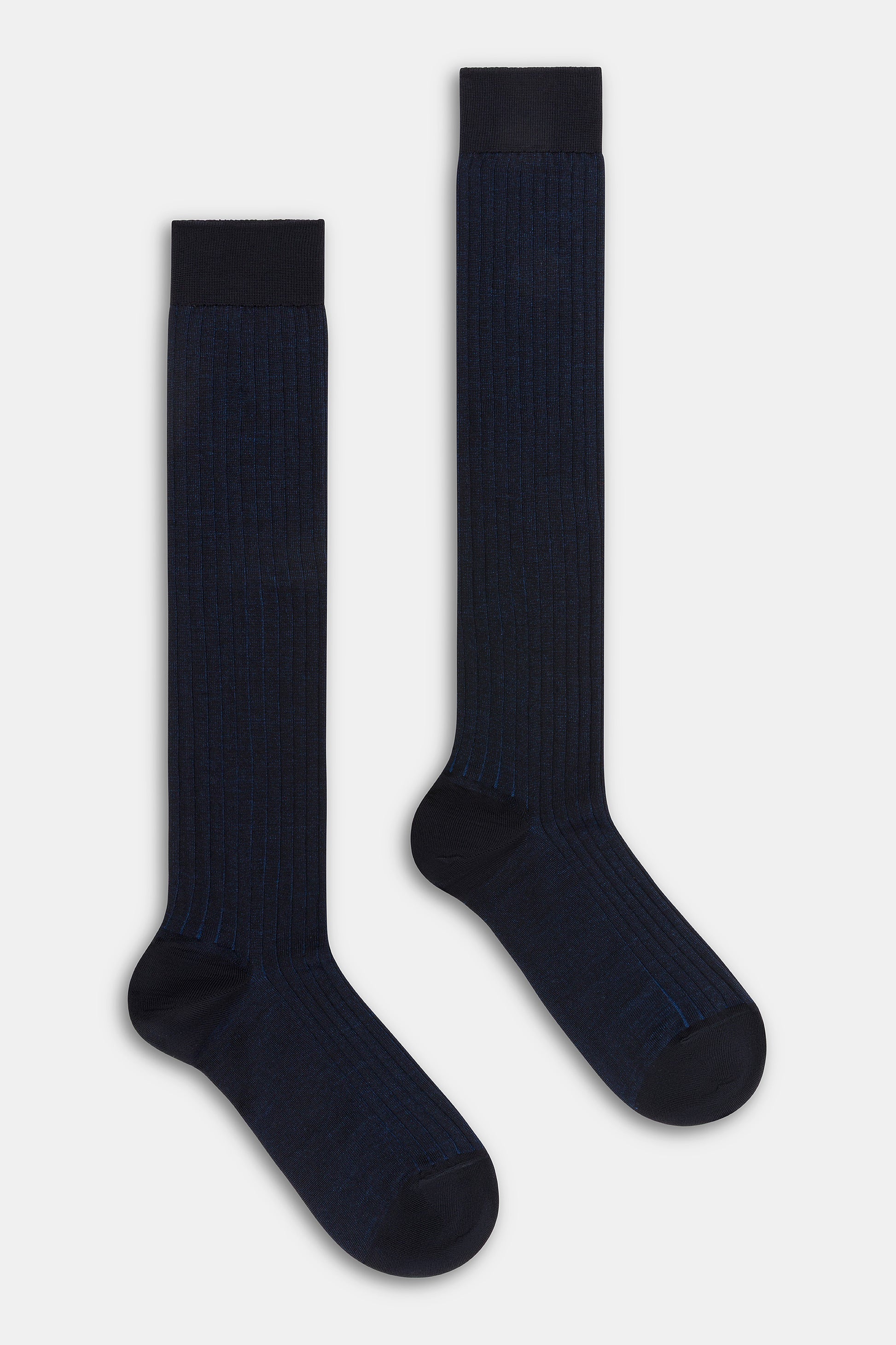 Calza lunga uomo in lana a coste, in una raffinata lavorazione Vanisé con colori a contrasto per apparire impeccabile in ogni occasione.