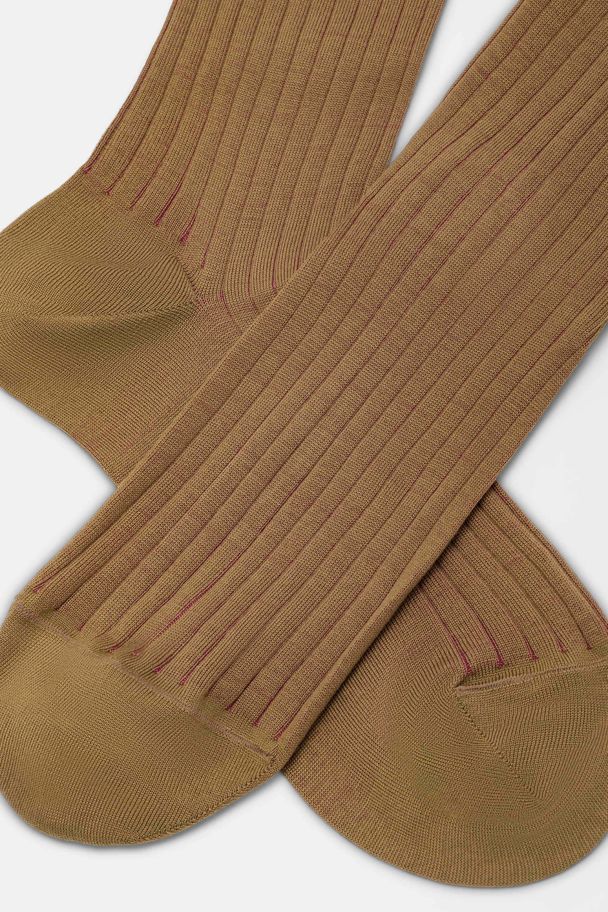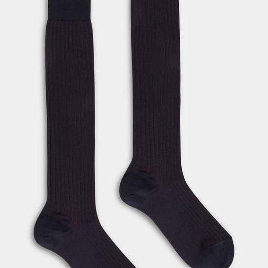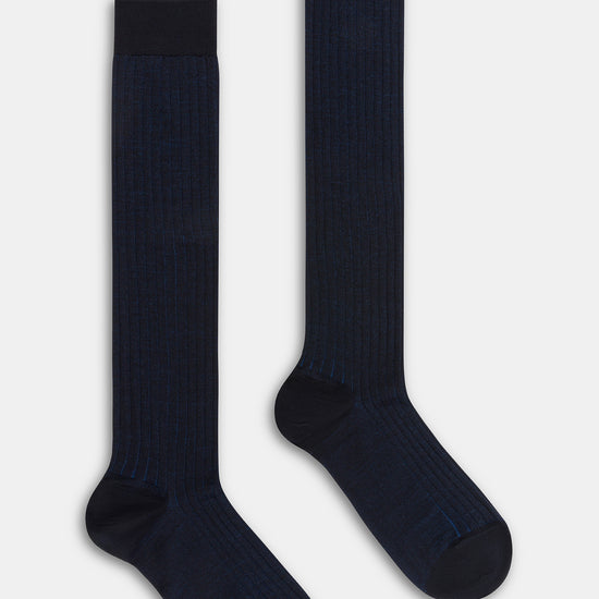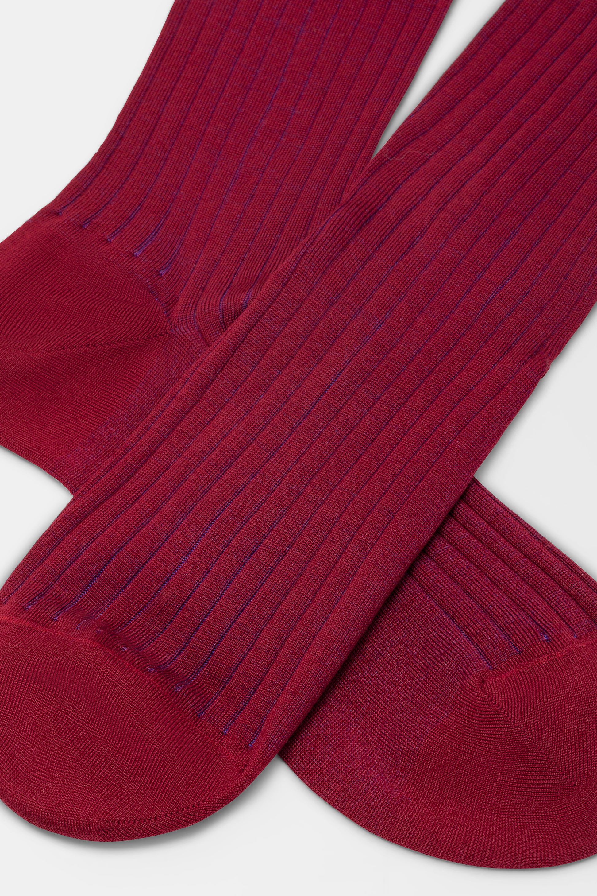 Calza lunga uomo in lana a coste, in una raffinata lavorazione Vanisé con colori a contrasto per apparire impeccabile in ogni occasione.