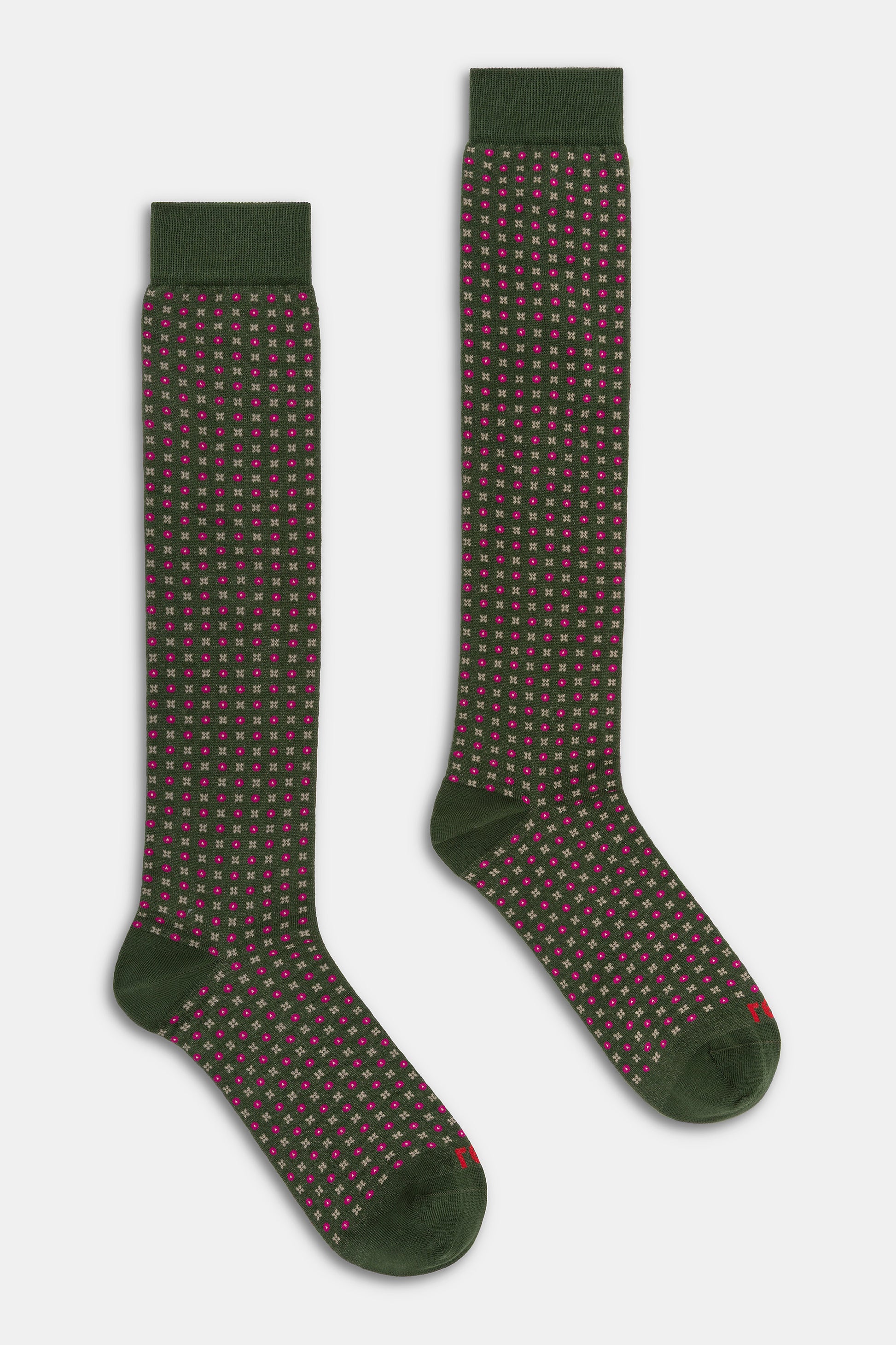 Calza lunga uomo realizzata in cotone-cashmere con disegno cravatta.