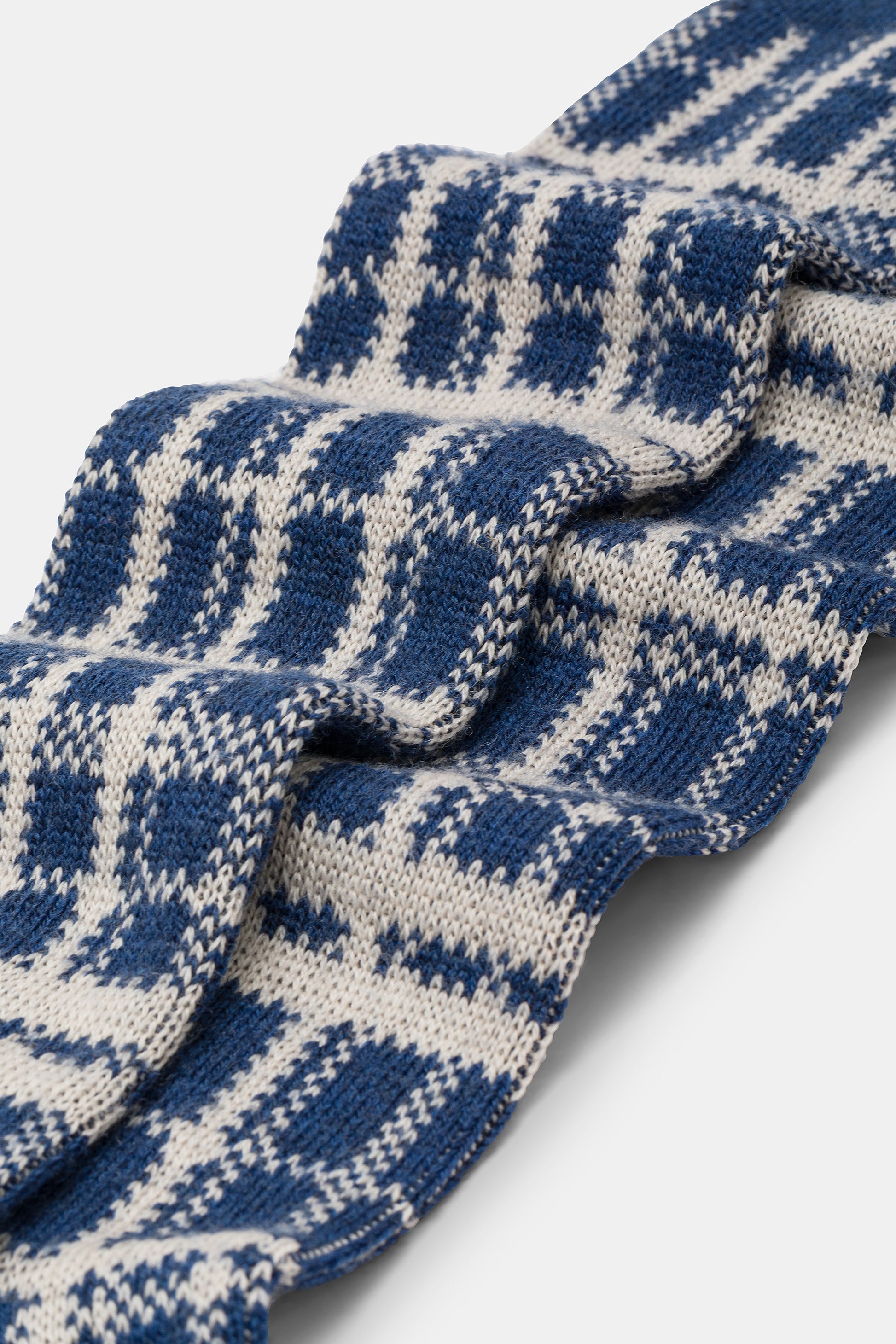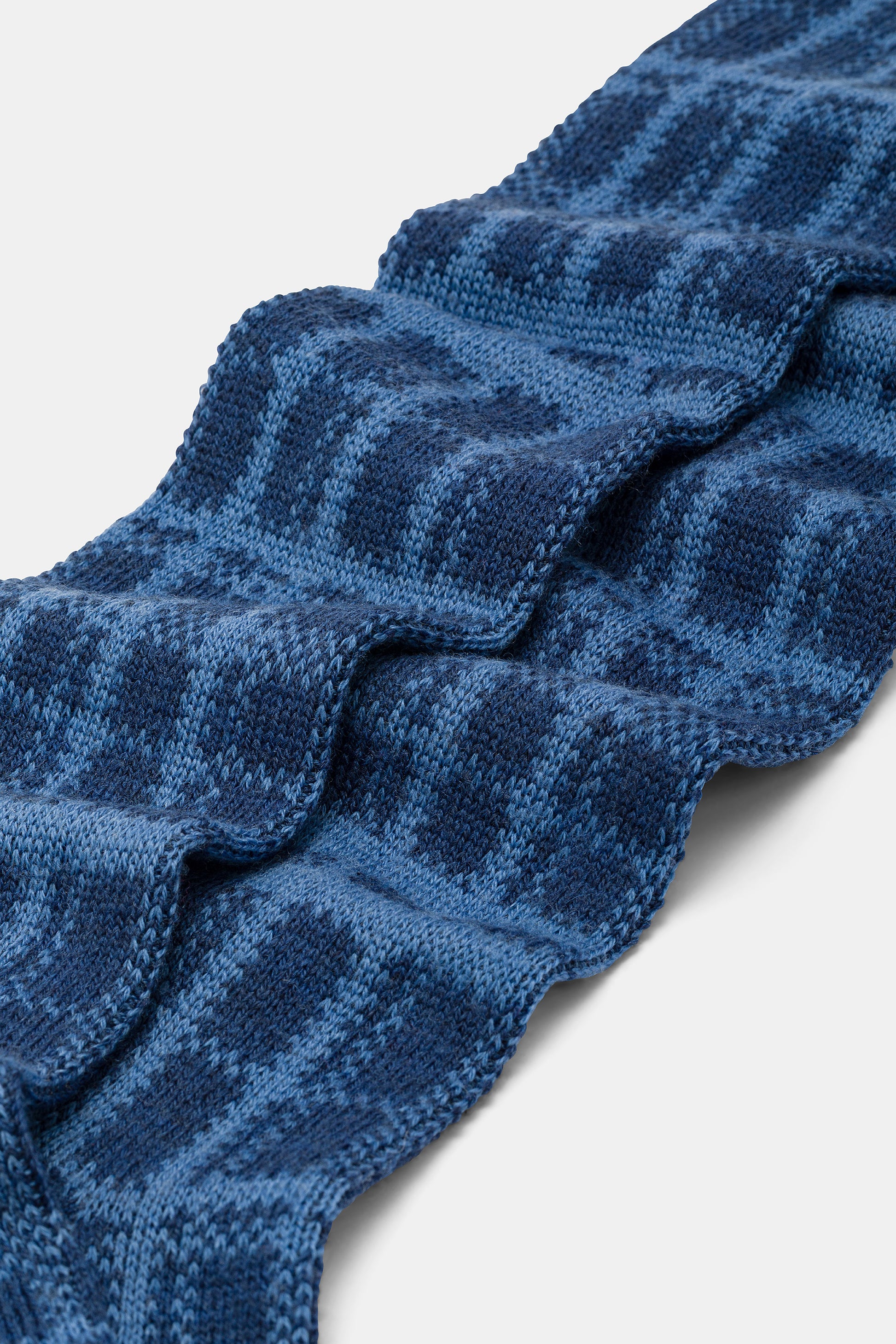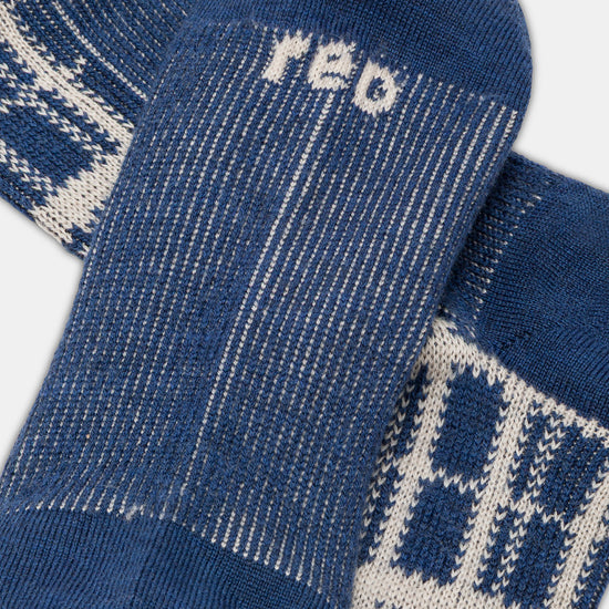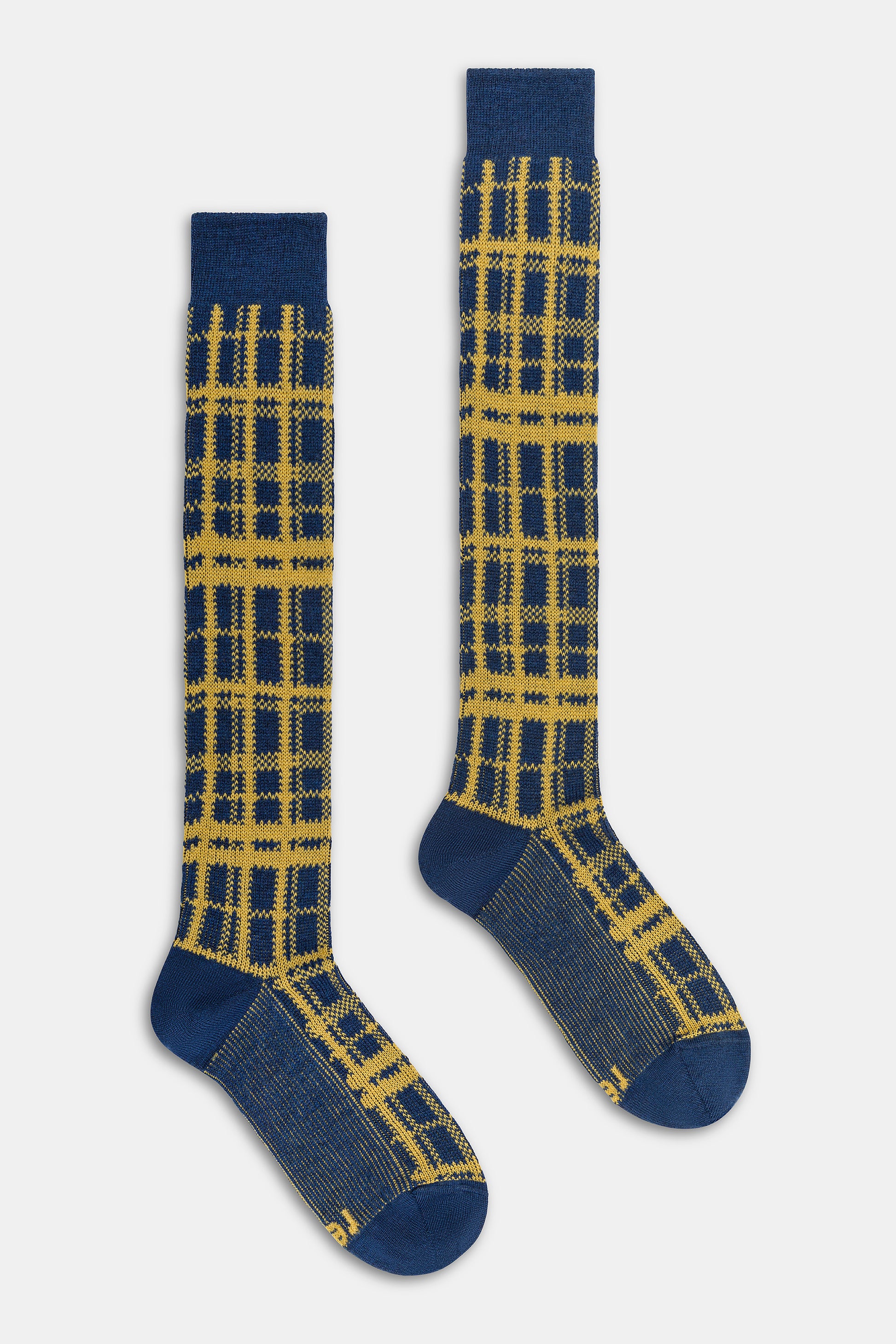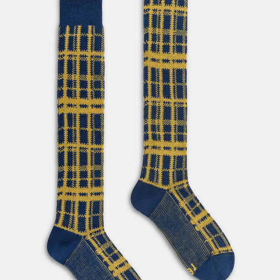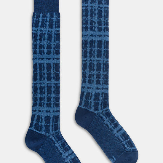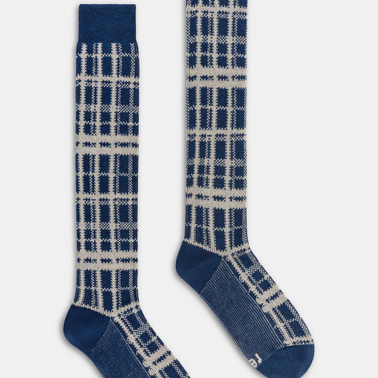 Calza lunga uomo con lavorazione Jacquard Tartan, realizzata in lana lavabile in lavatrice.