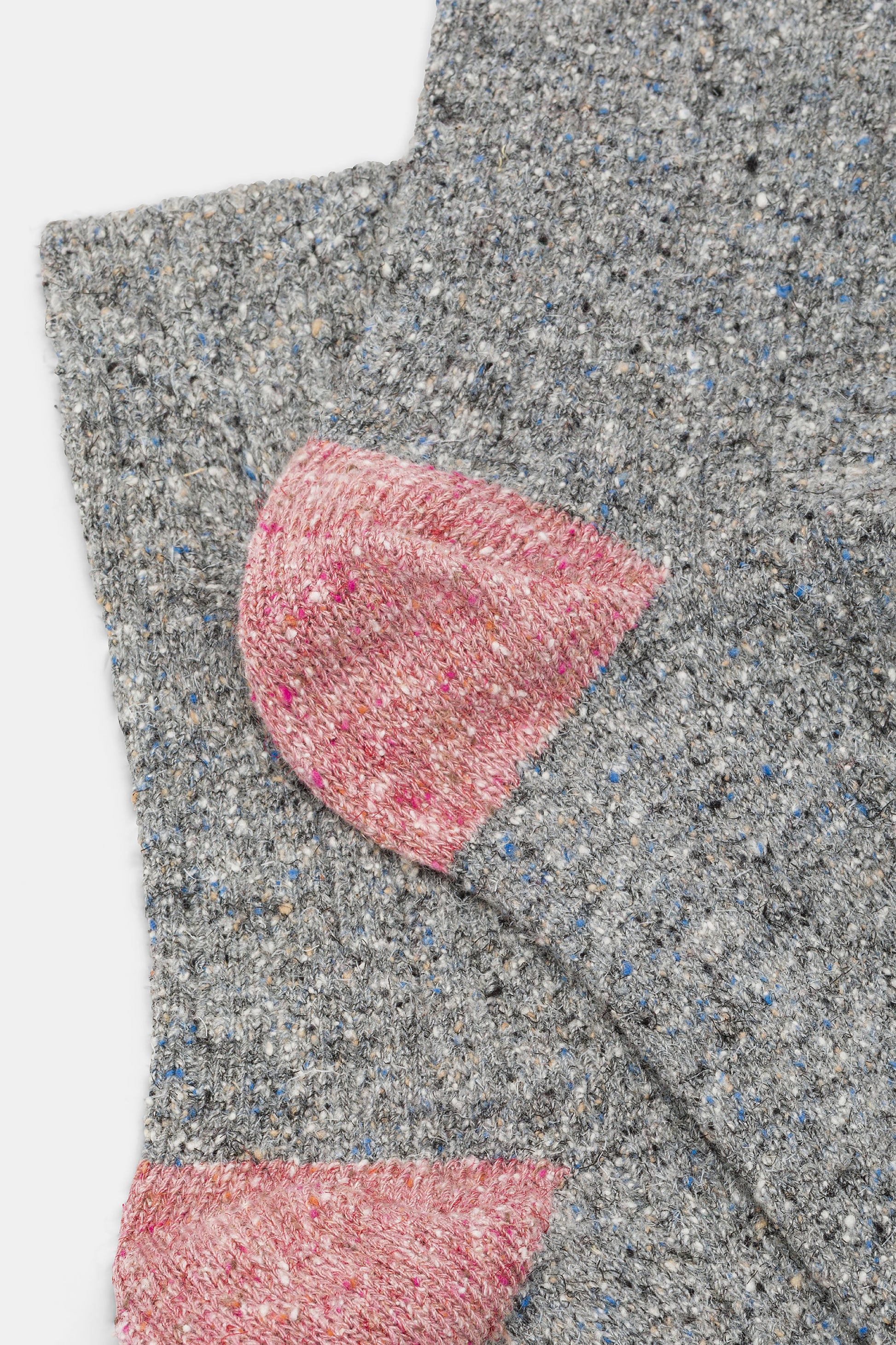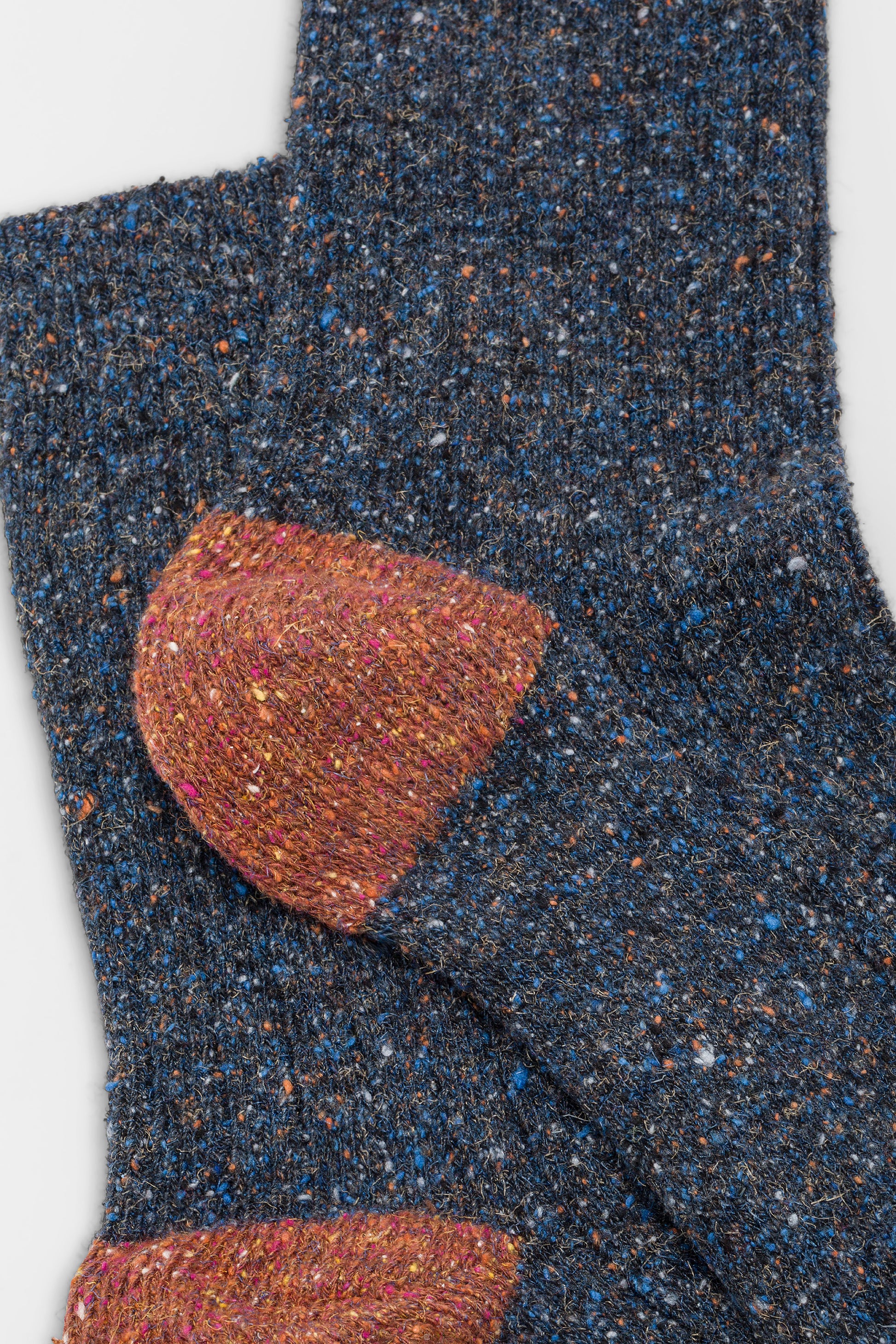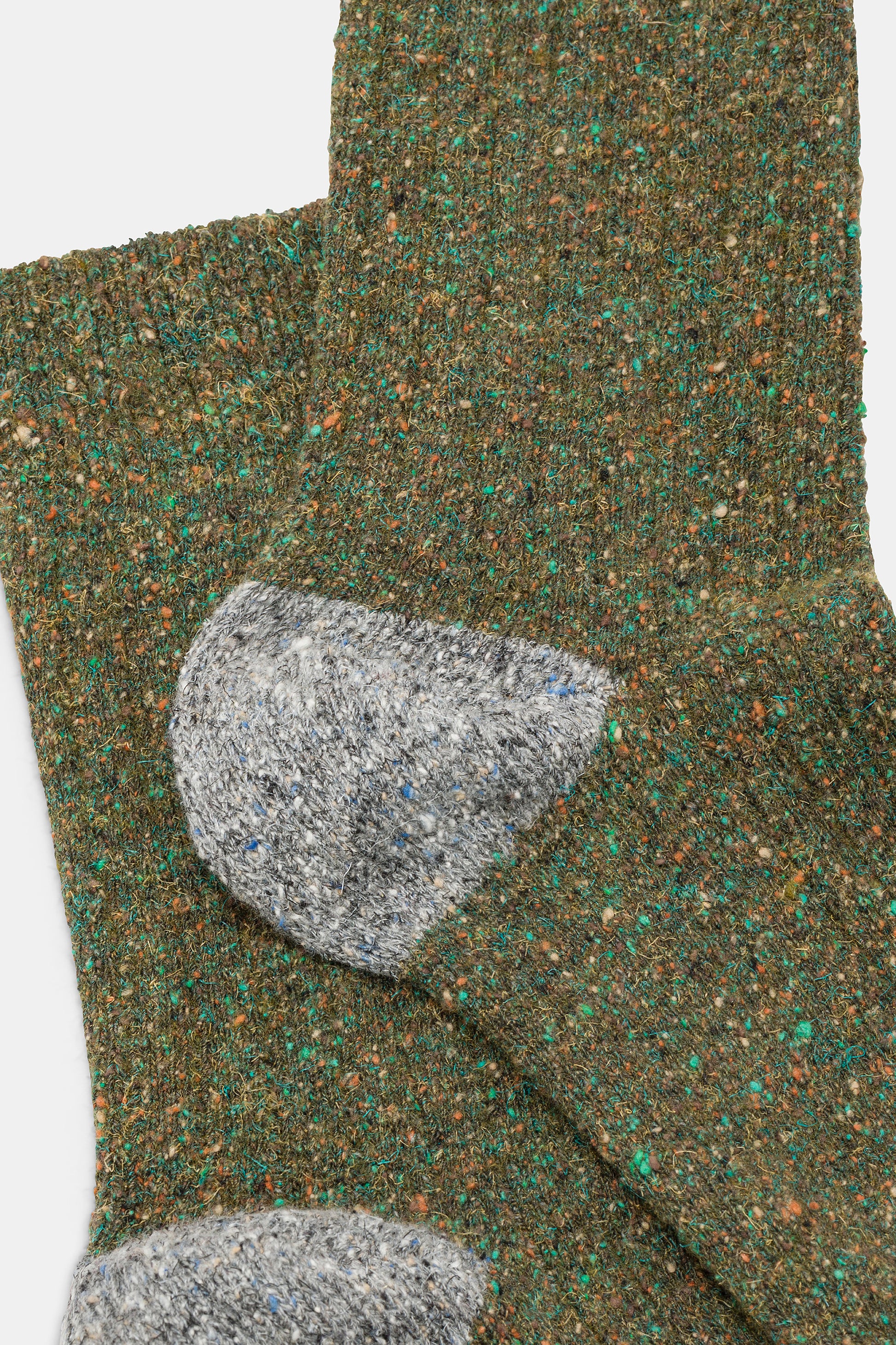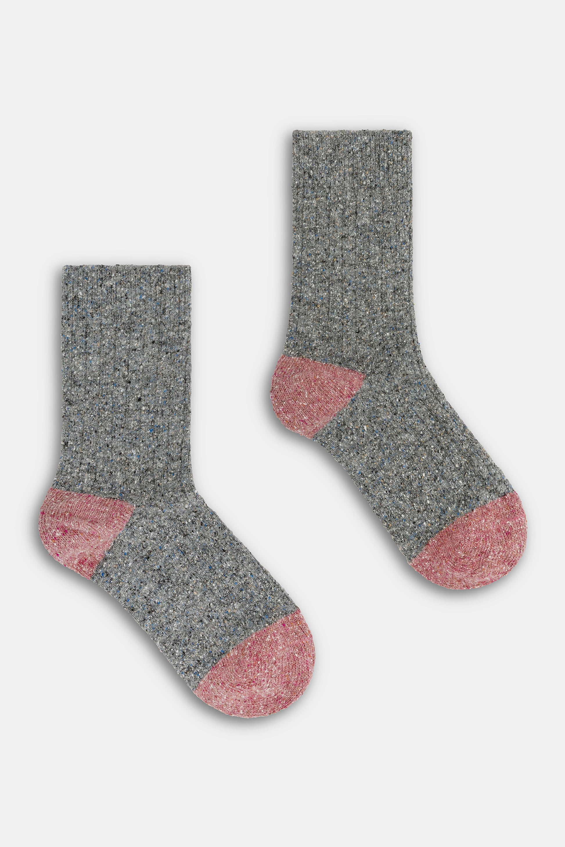 Calzino donna realizzato con filato bottonato, con tacco e punta a contrasto.