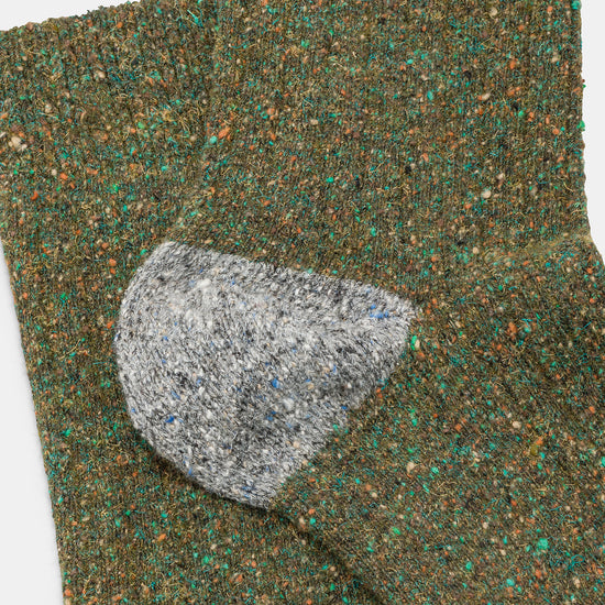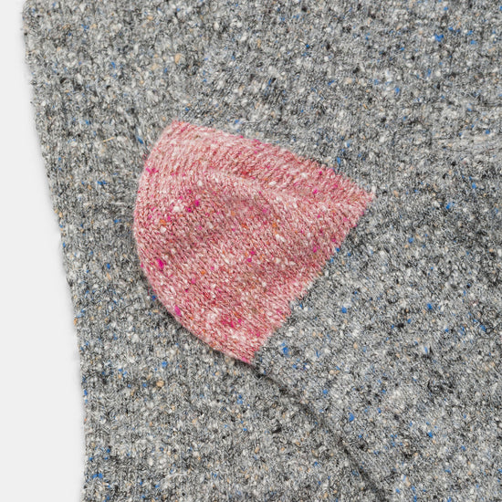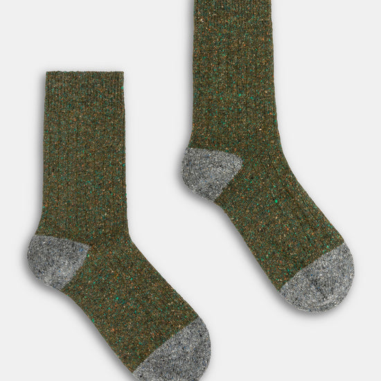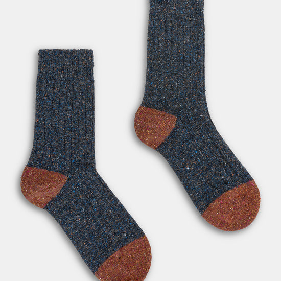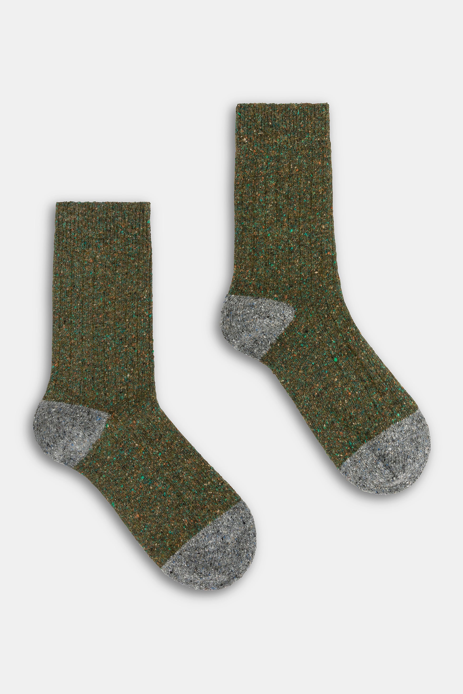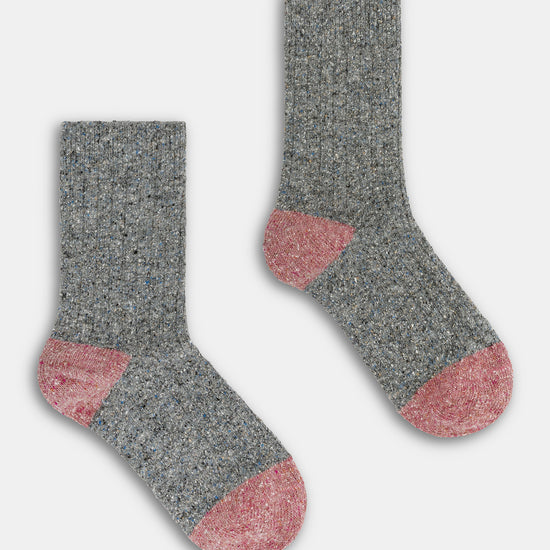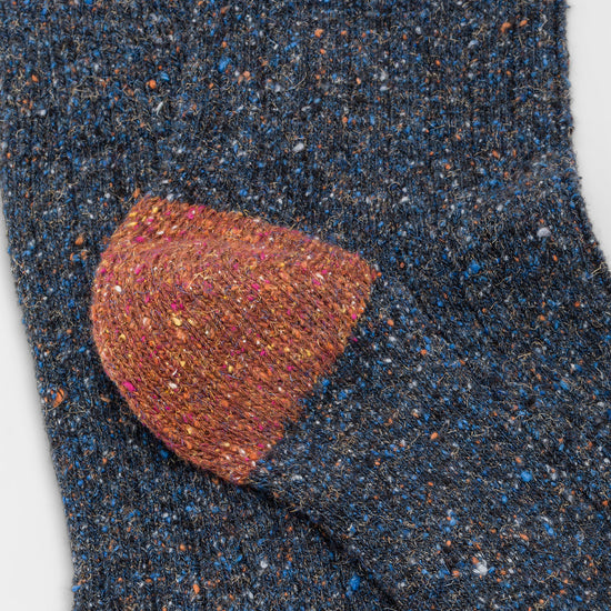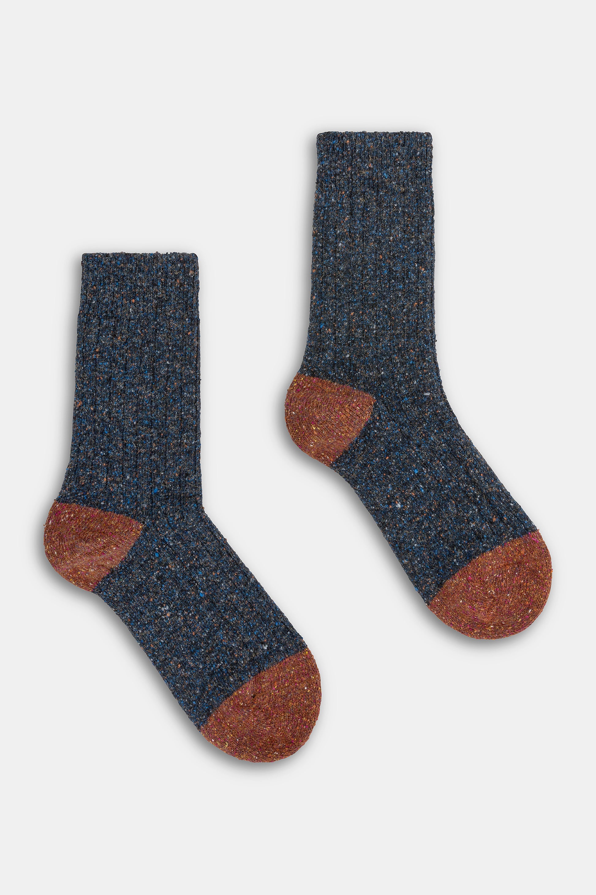 Calzino donna realizzato con filato bottonato, con tacco e punta a contrasto.