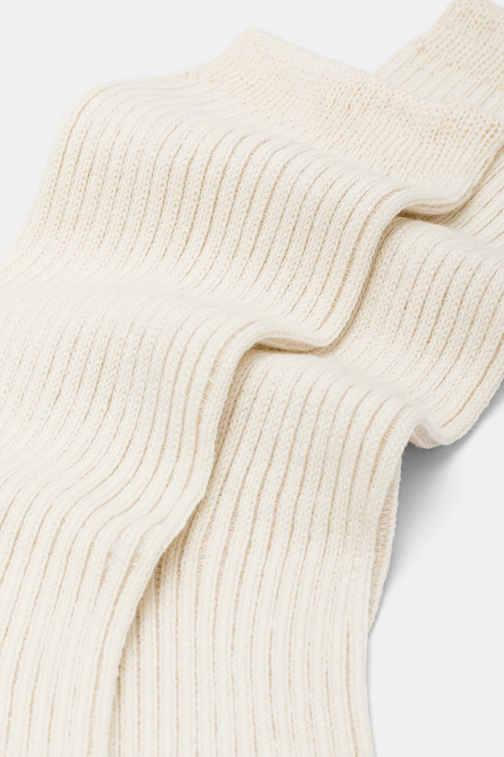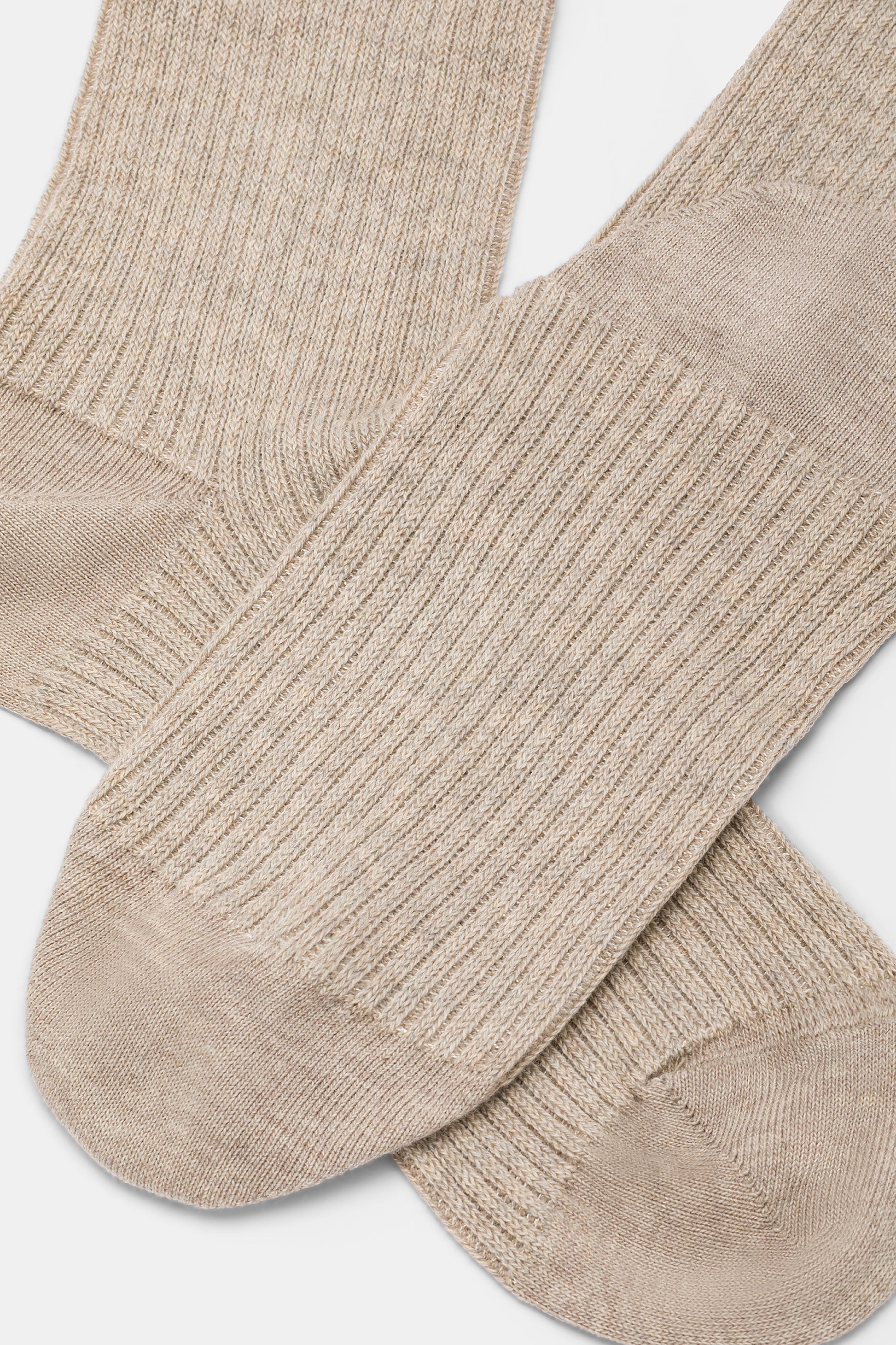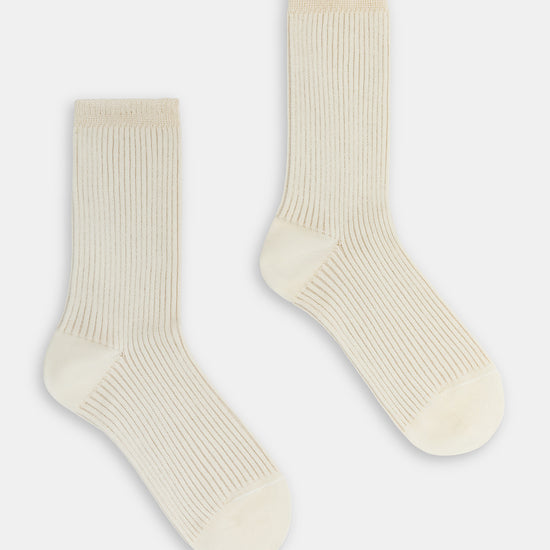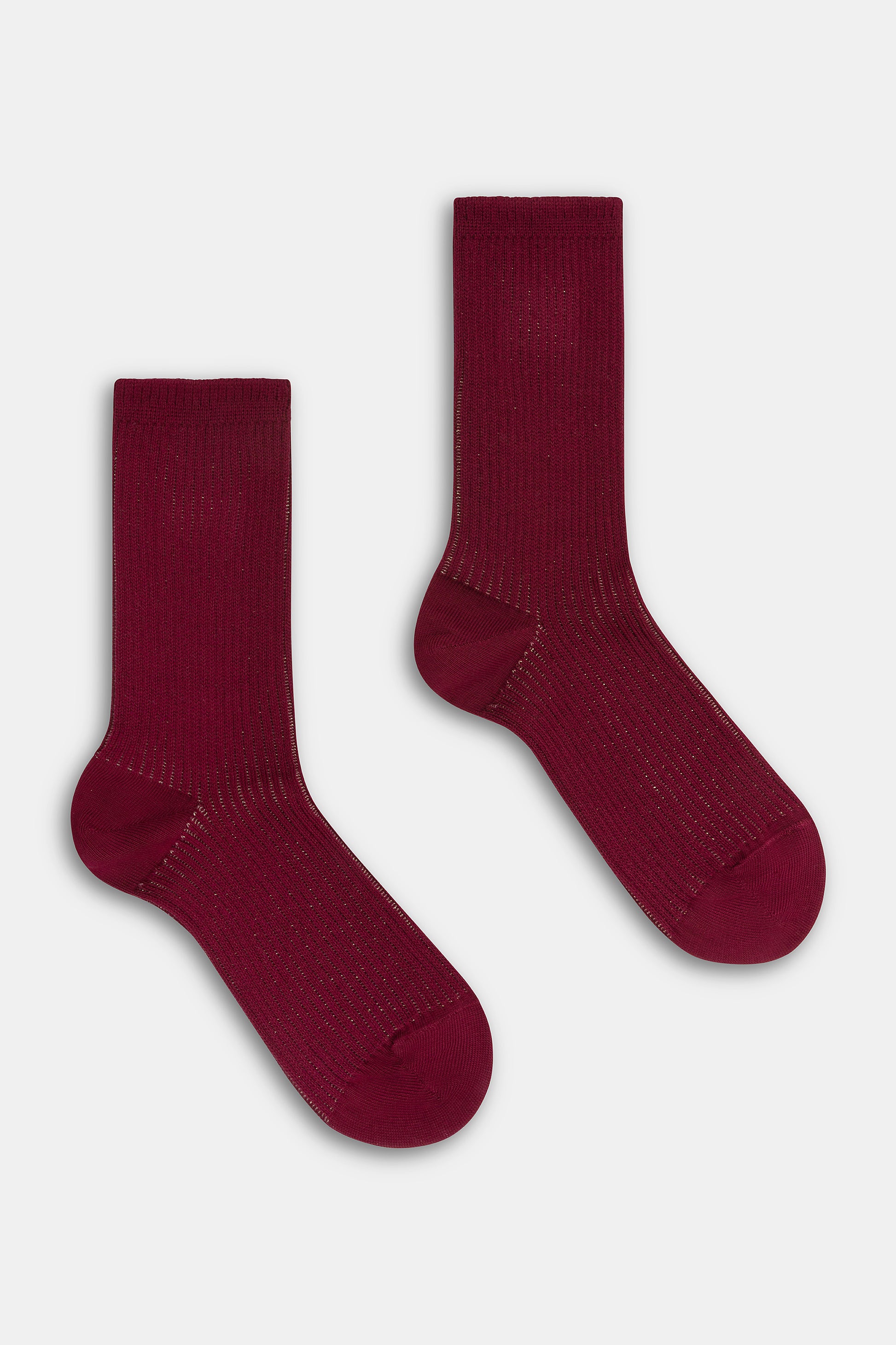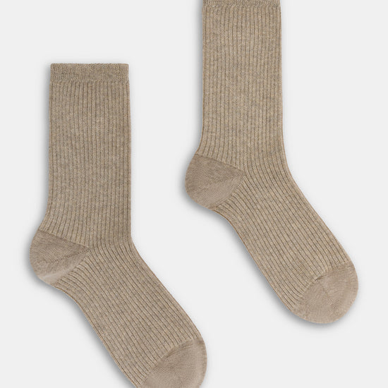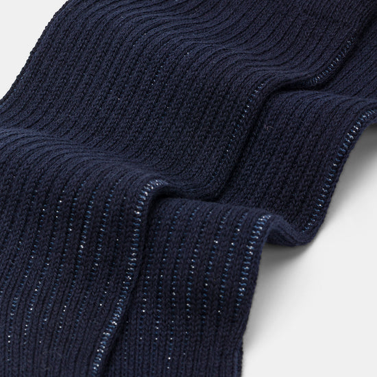 Calzino da donna realizzato con una raffinata lavorazione a costa 2:2 in caldo cotone e lurex.