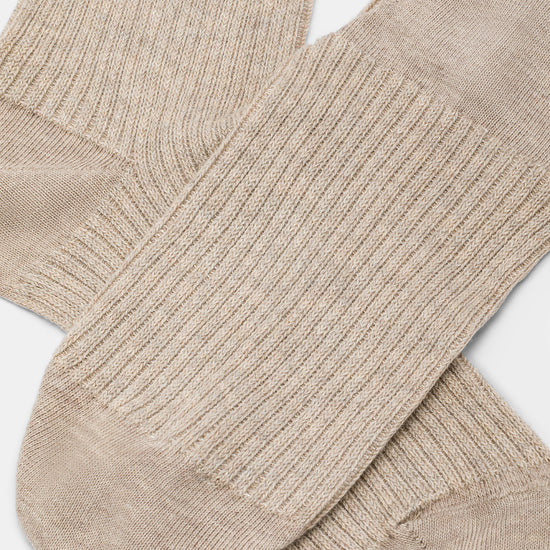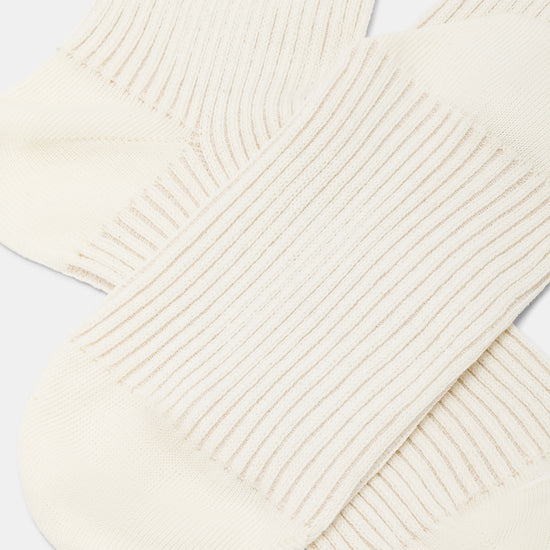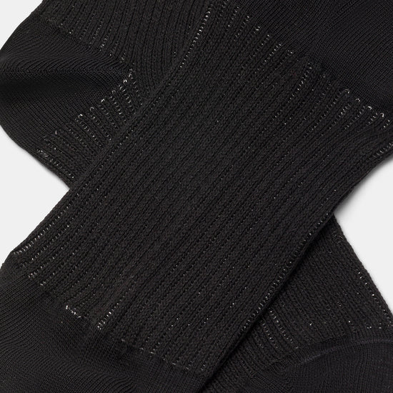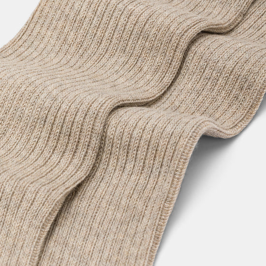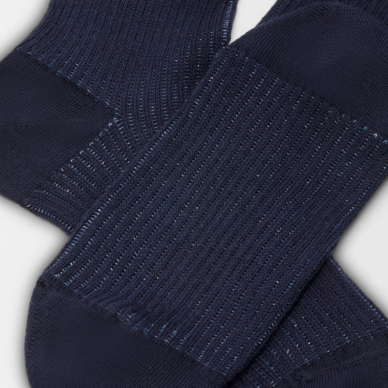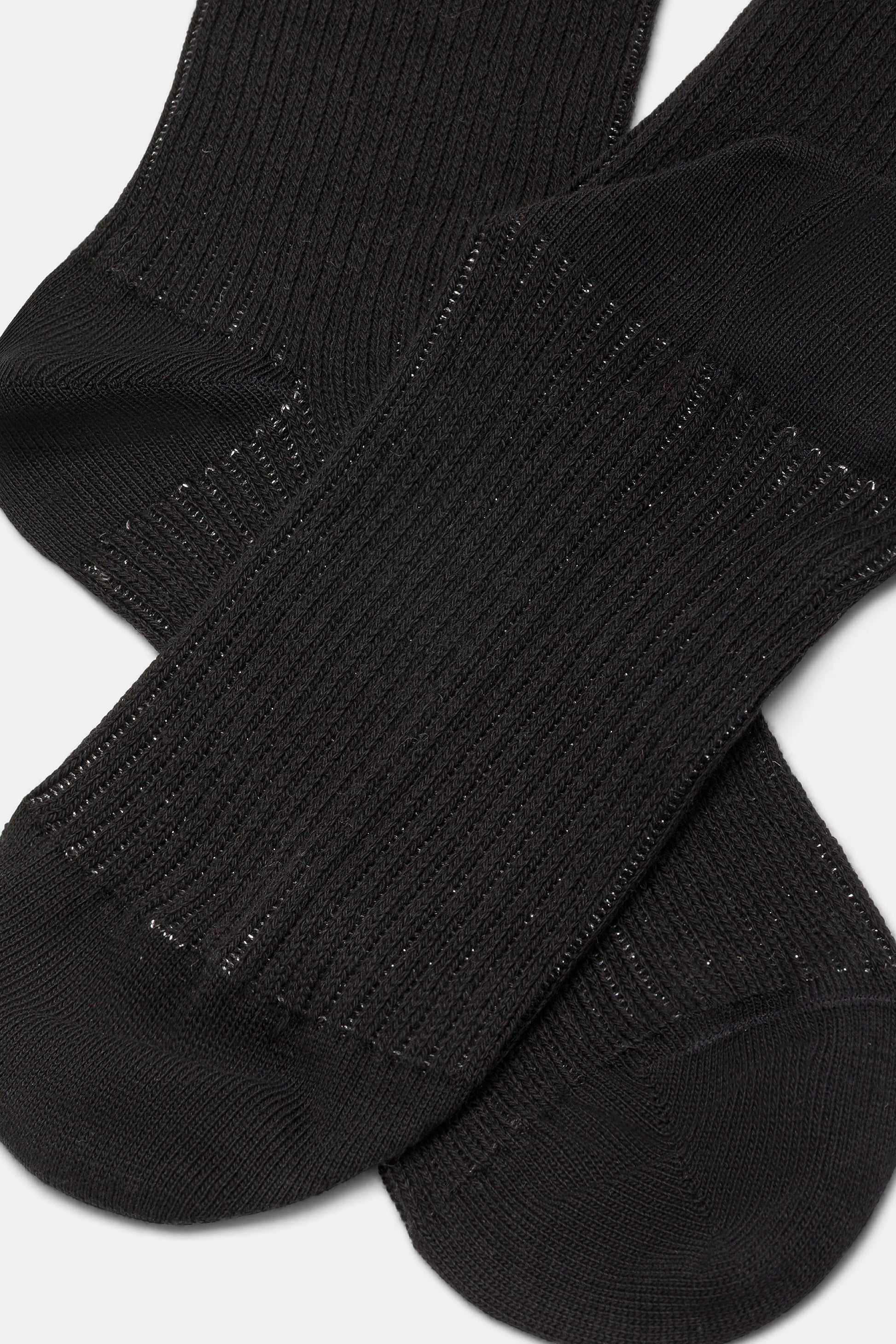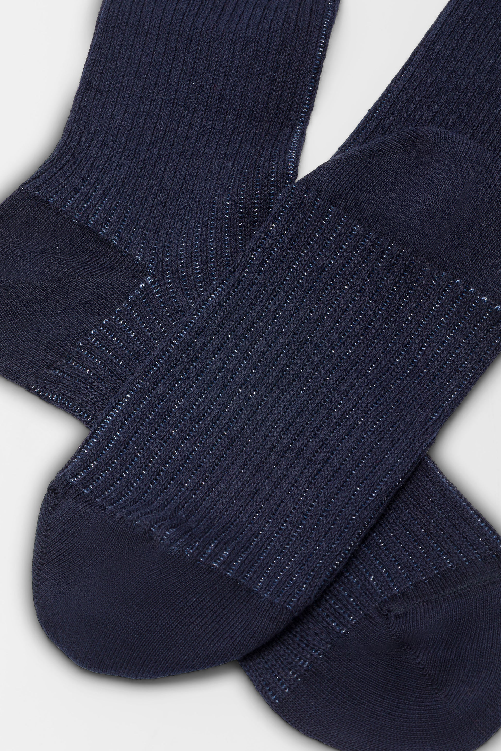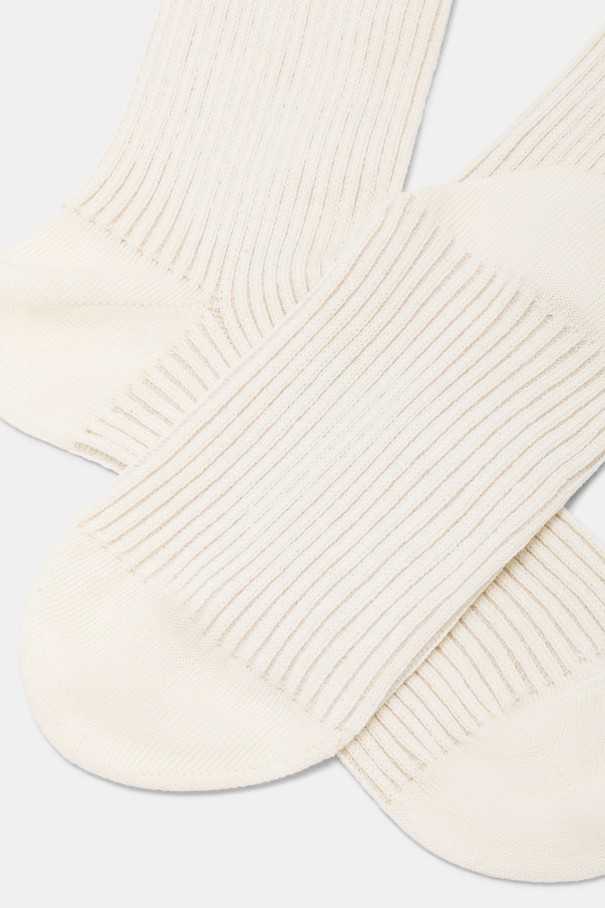 Calzino da donna realizzato con una raffinata lavorazione a costa 2:2 in caldo cotone e lurex.