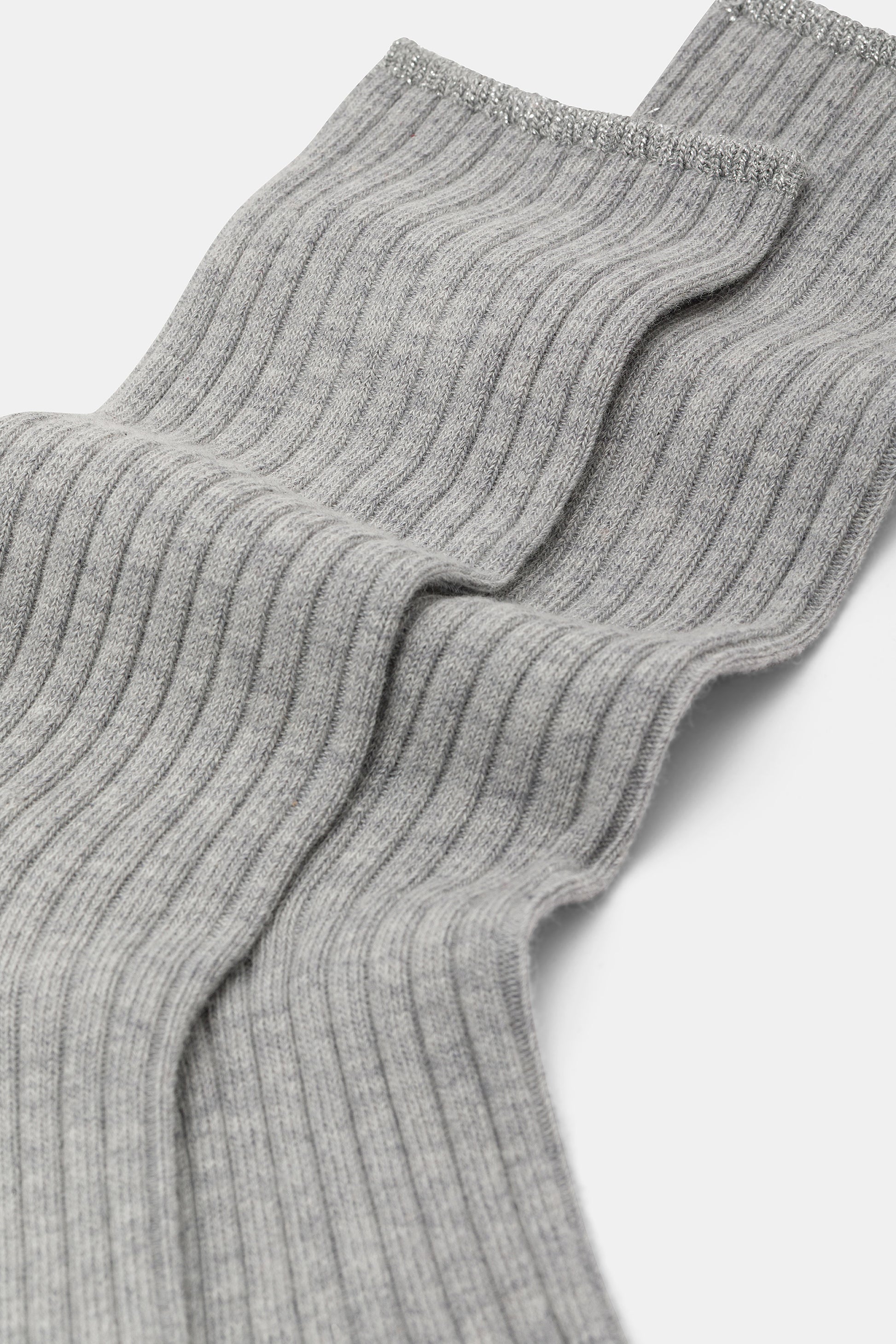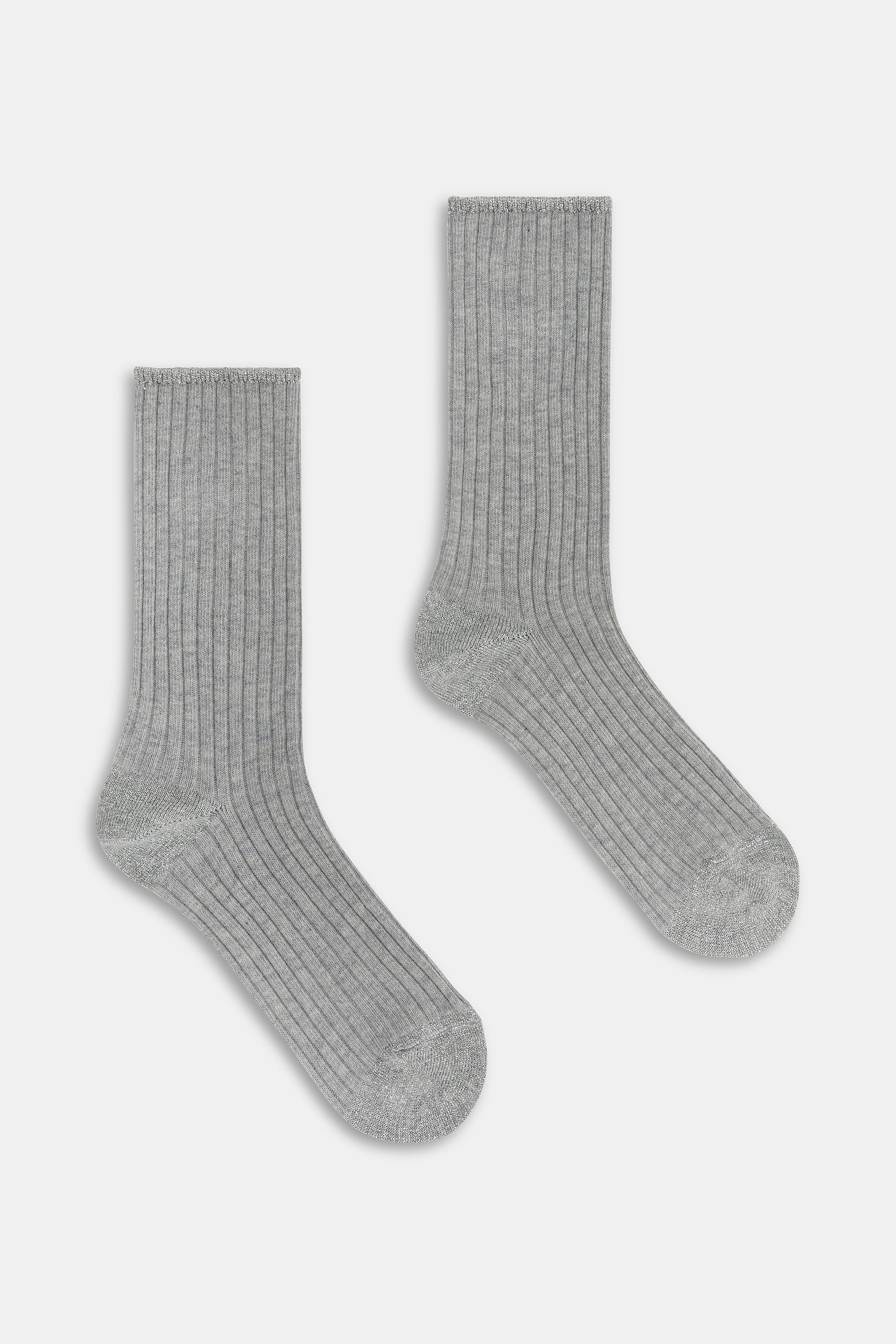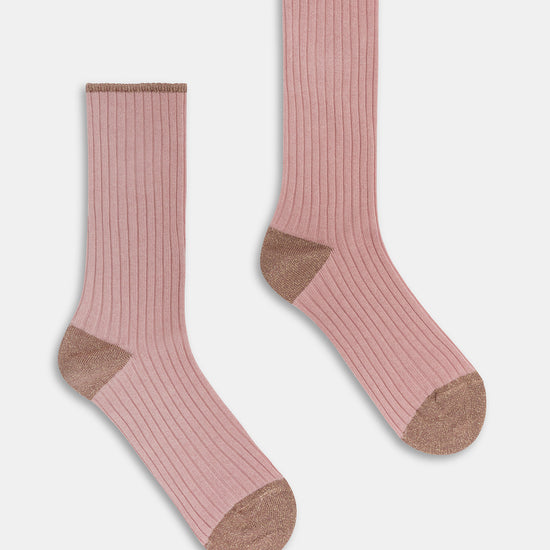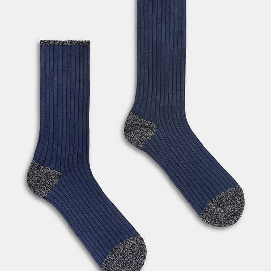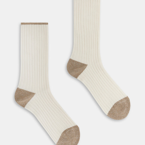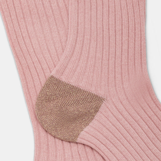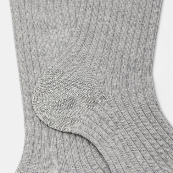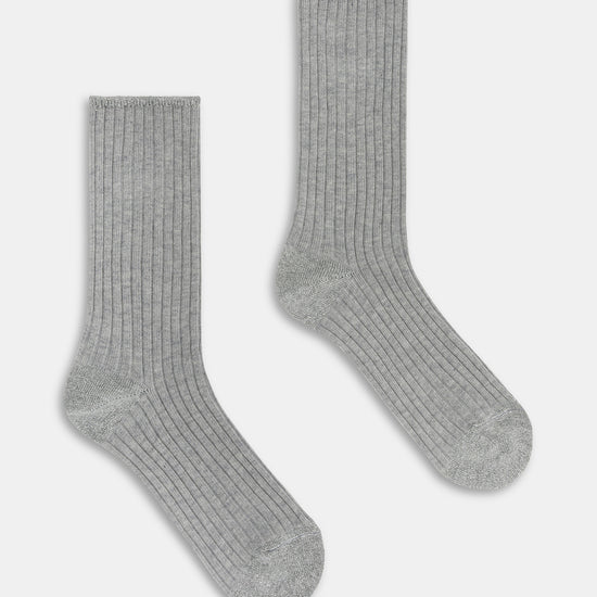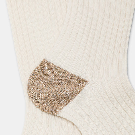 Calzino da donna realizzato con una raffinata lavorazione a costa in cotone e cashmere.