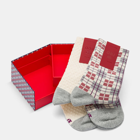 Cofanetto regalo contenente due paia di calzini da donna in cotone.