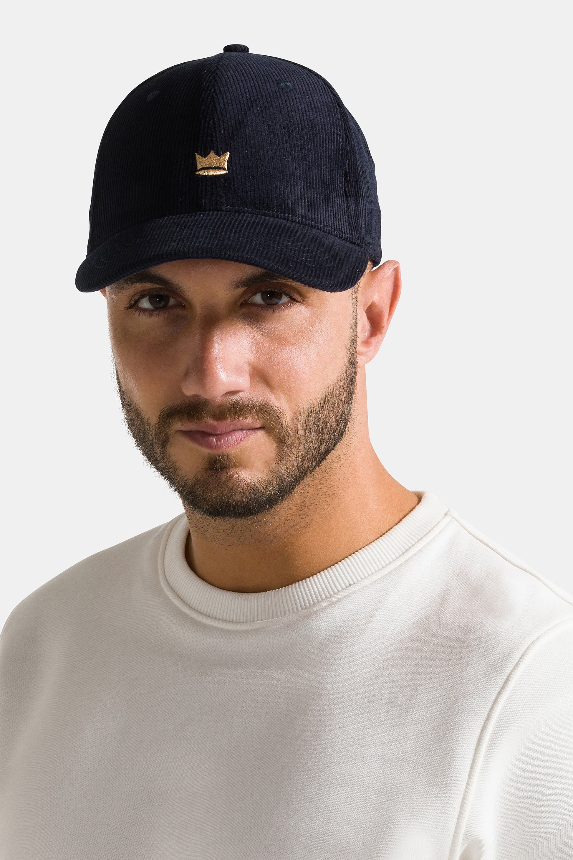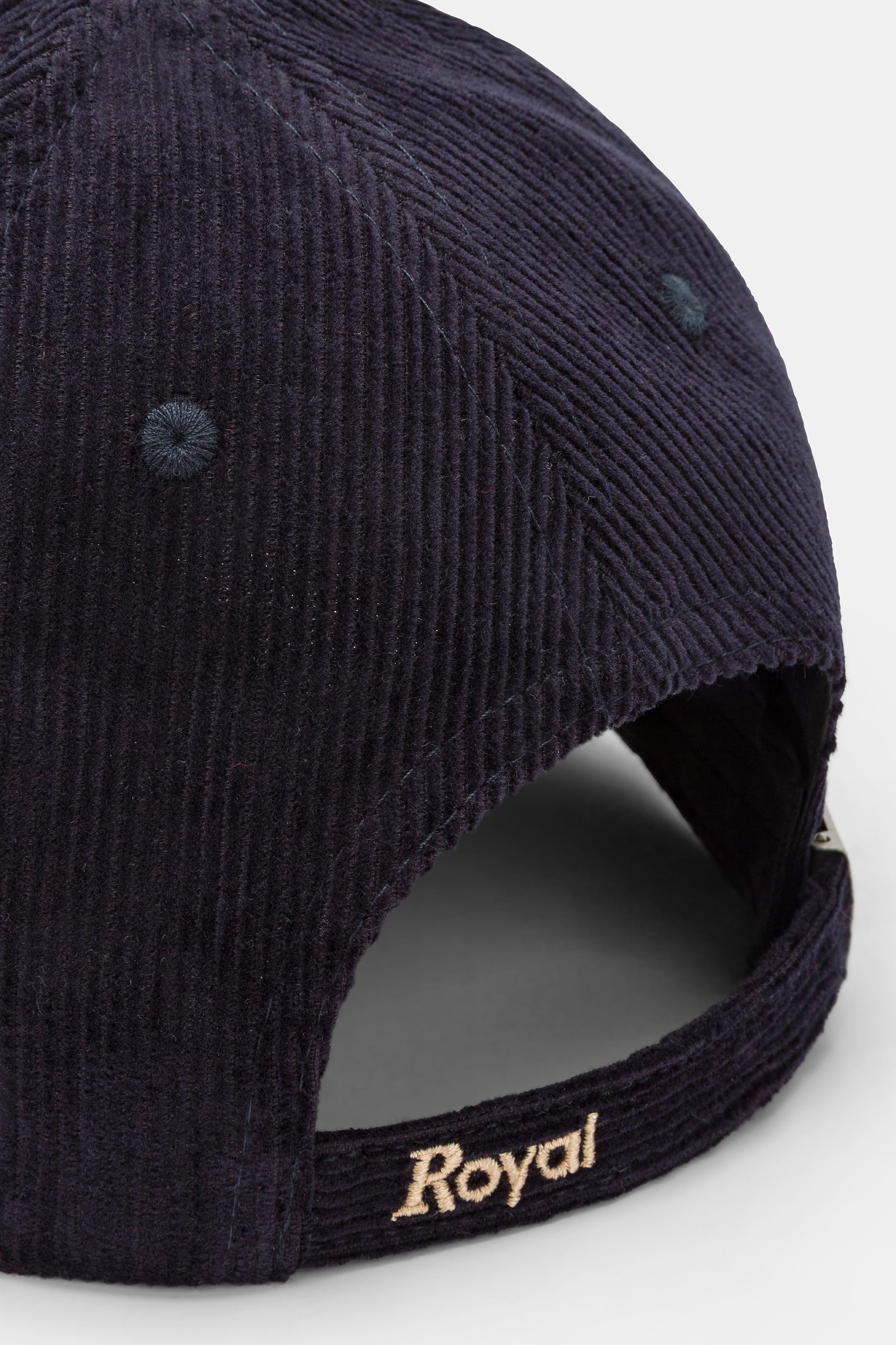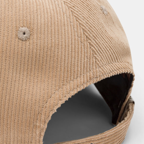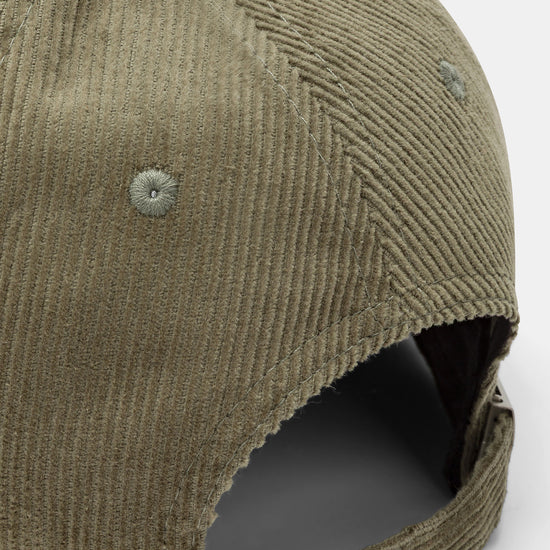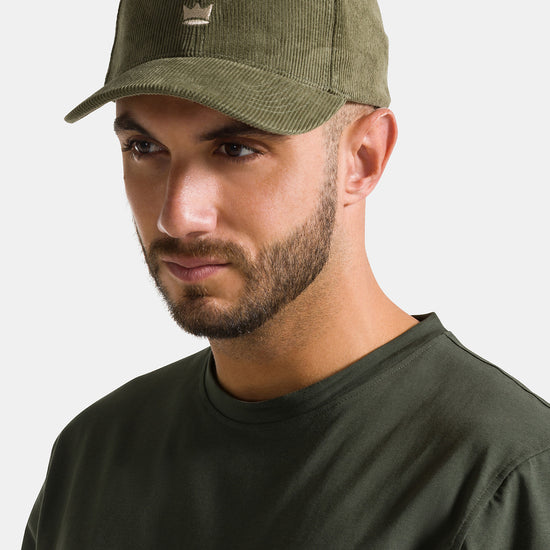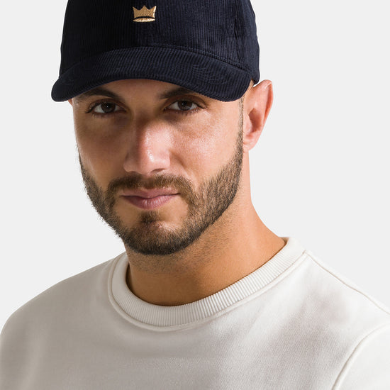 Cappello con visiera, realizzato in velluto a coste a tinta unita con corona ricamata.