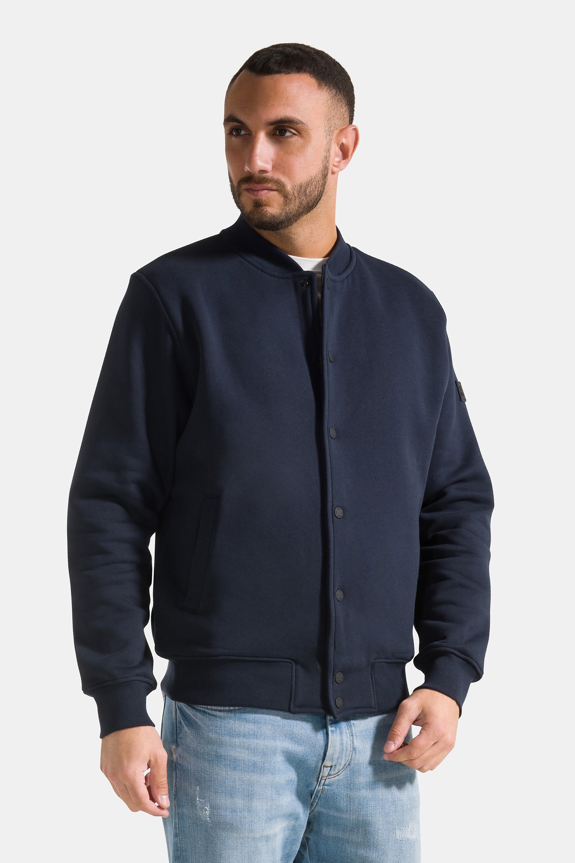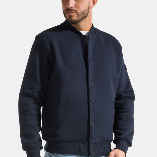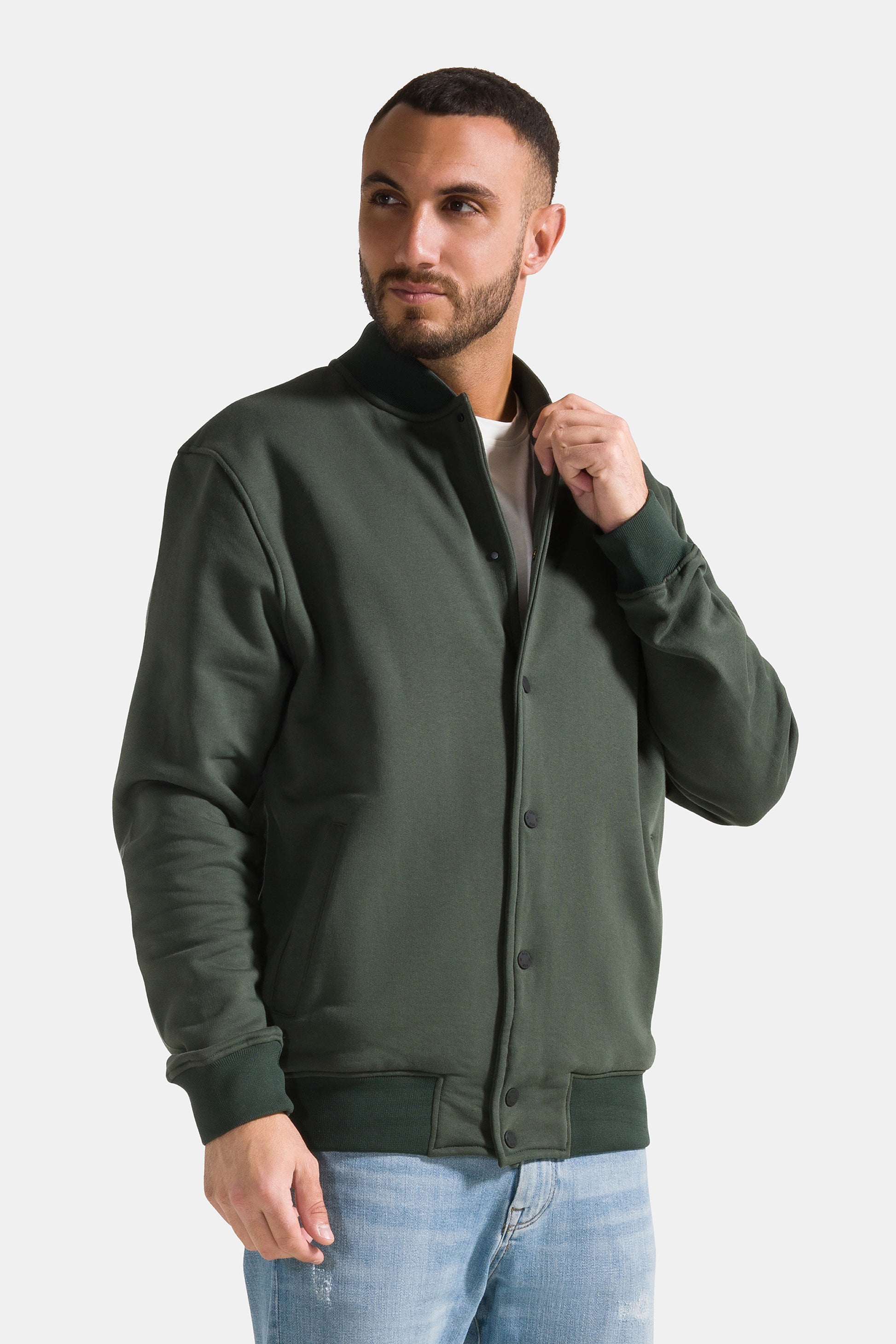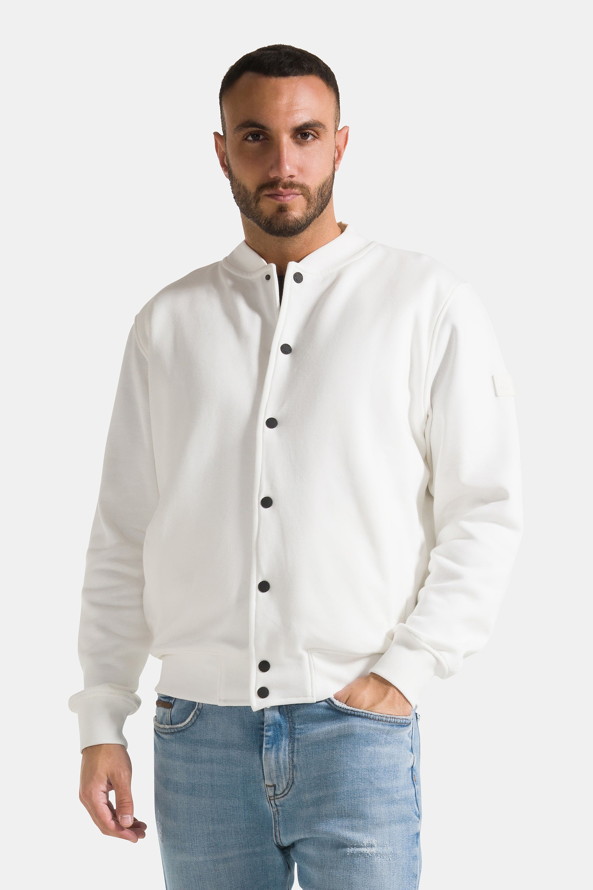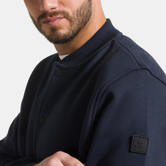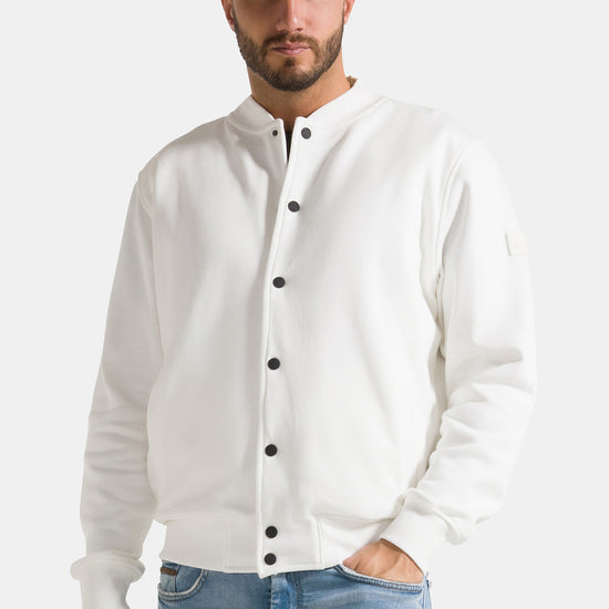 Giacca college da uomo uomo con bottoni, realizzata in 100% cotone garzato a tinta unita.