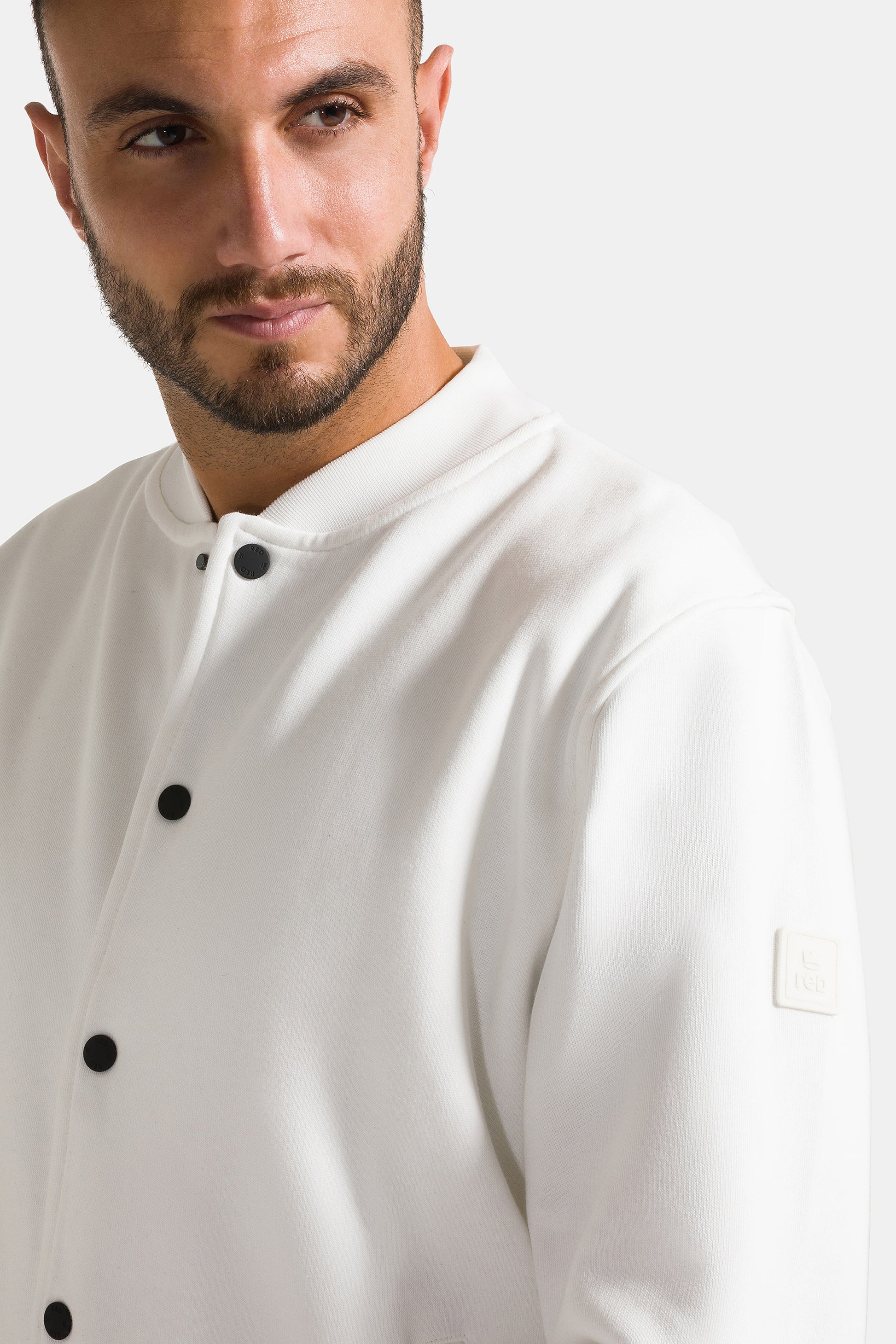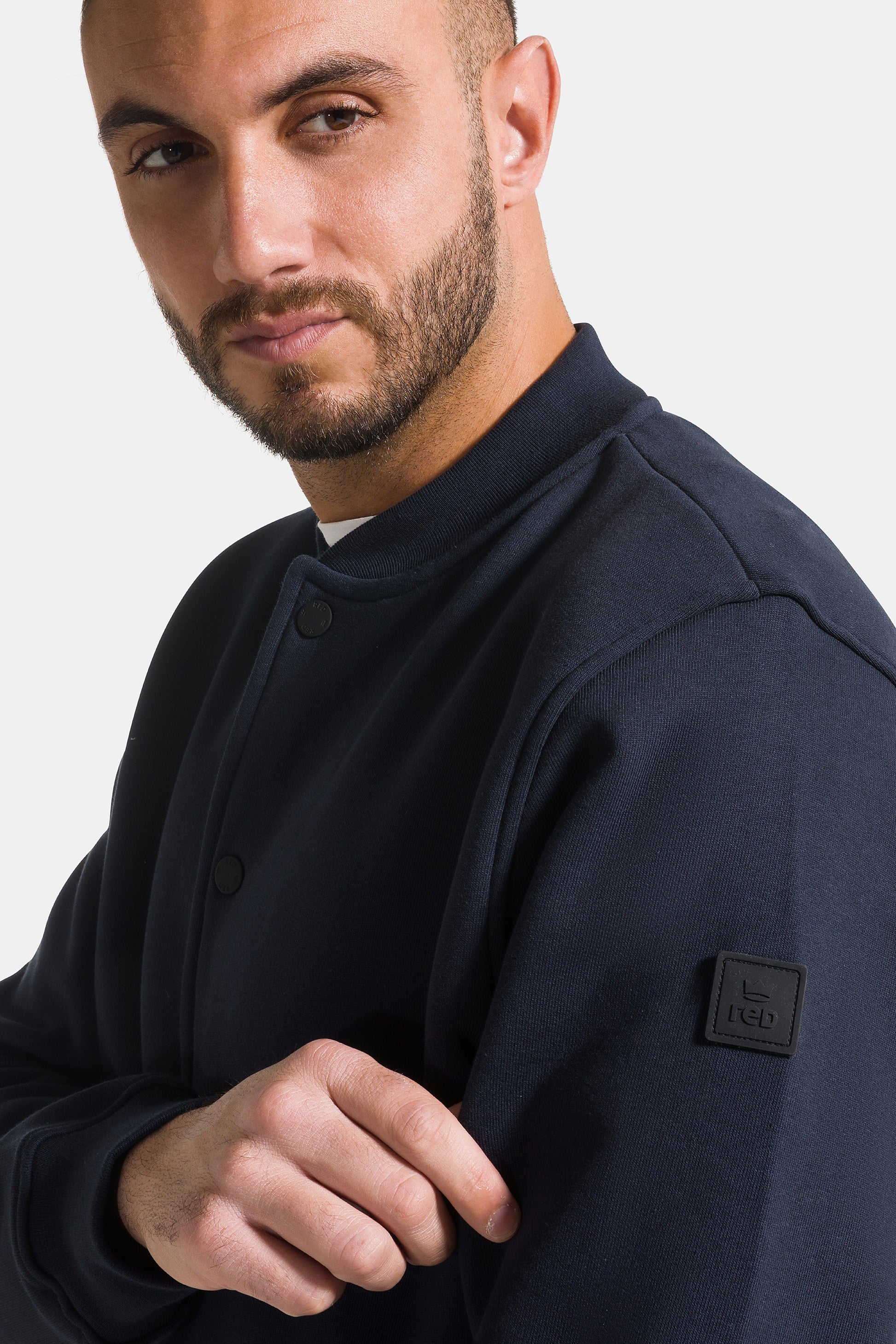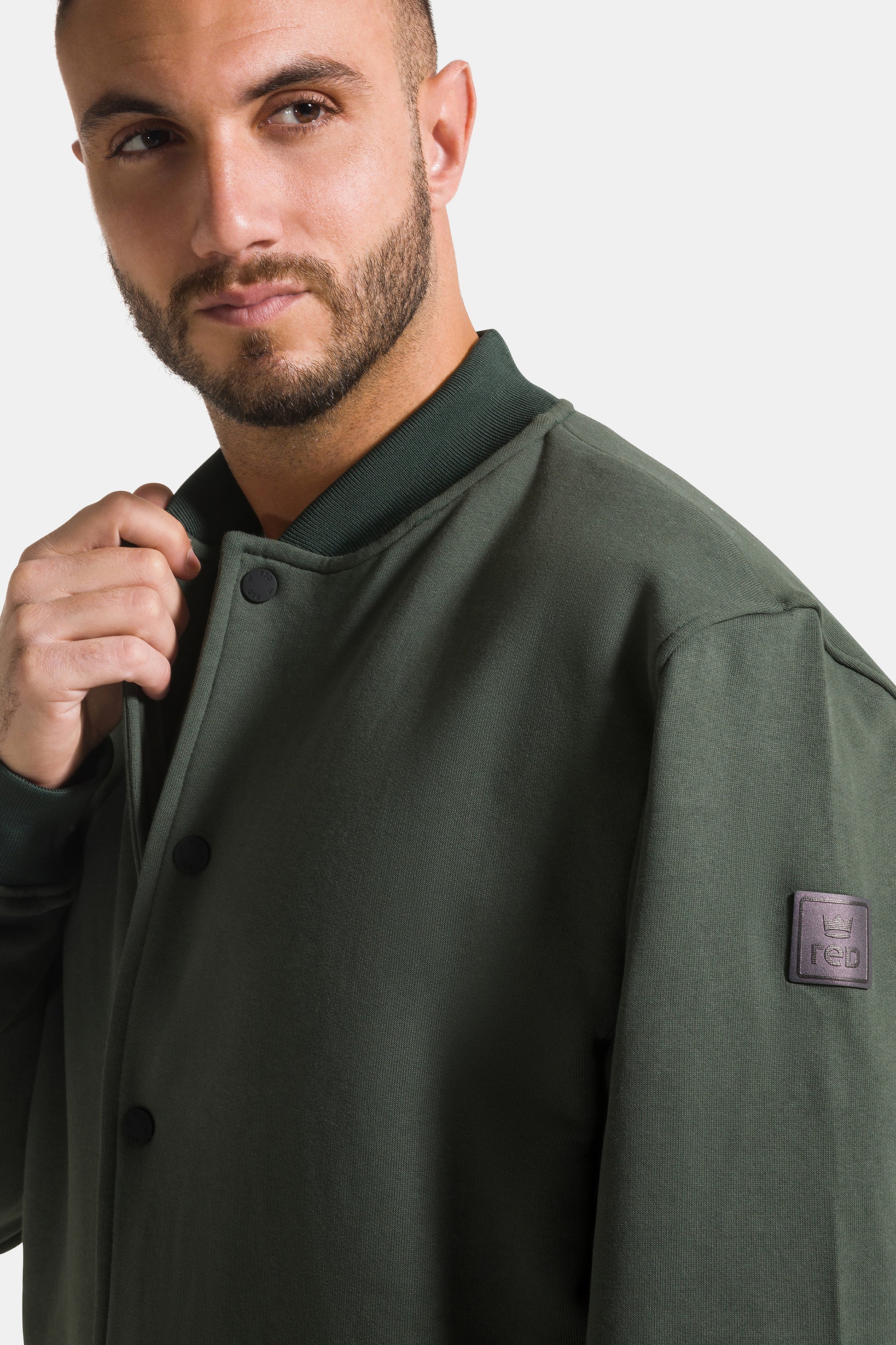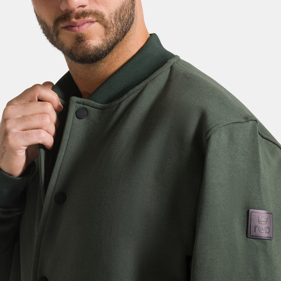 Giacca college da uomo uomo con bottoni, realizzata in 100% cotone garzato a tinta unita.